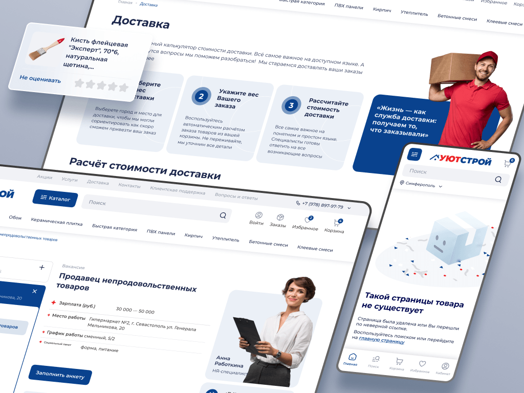 Компании "УютСтрой" - крупнейшей сети строительно-хозяйственных гипермаркетов в Крыму - было нужно обновить свой интернет-магазин. Существующий сайт, который назывался "Новацентр" использовал платформу Битрикс, ее было сложно и дорого дорабатывать. Также сайт имел устаревший дизайн и серьезные проблемы с загрузкой данных из 1С.
