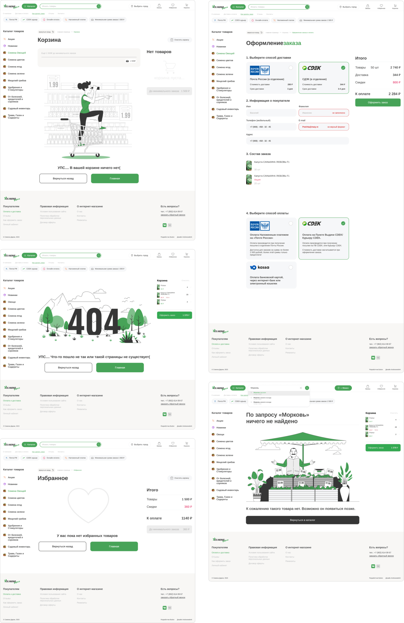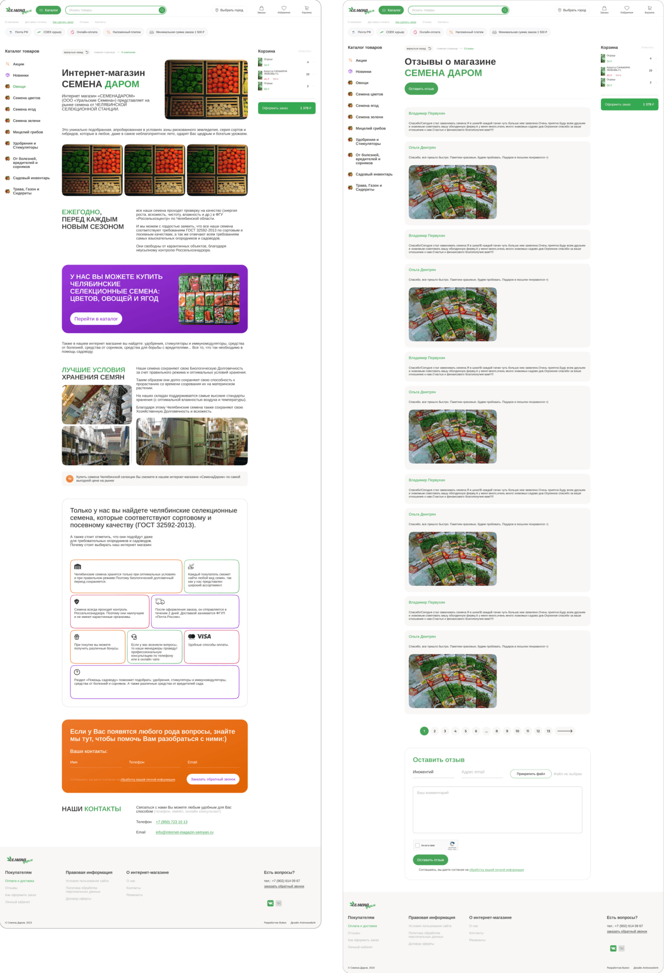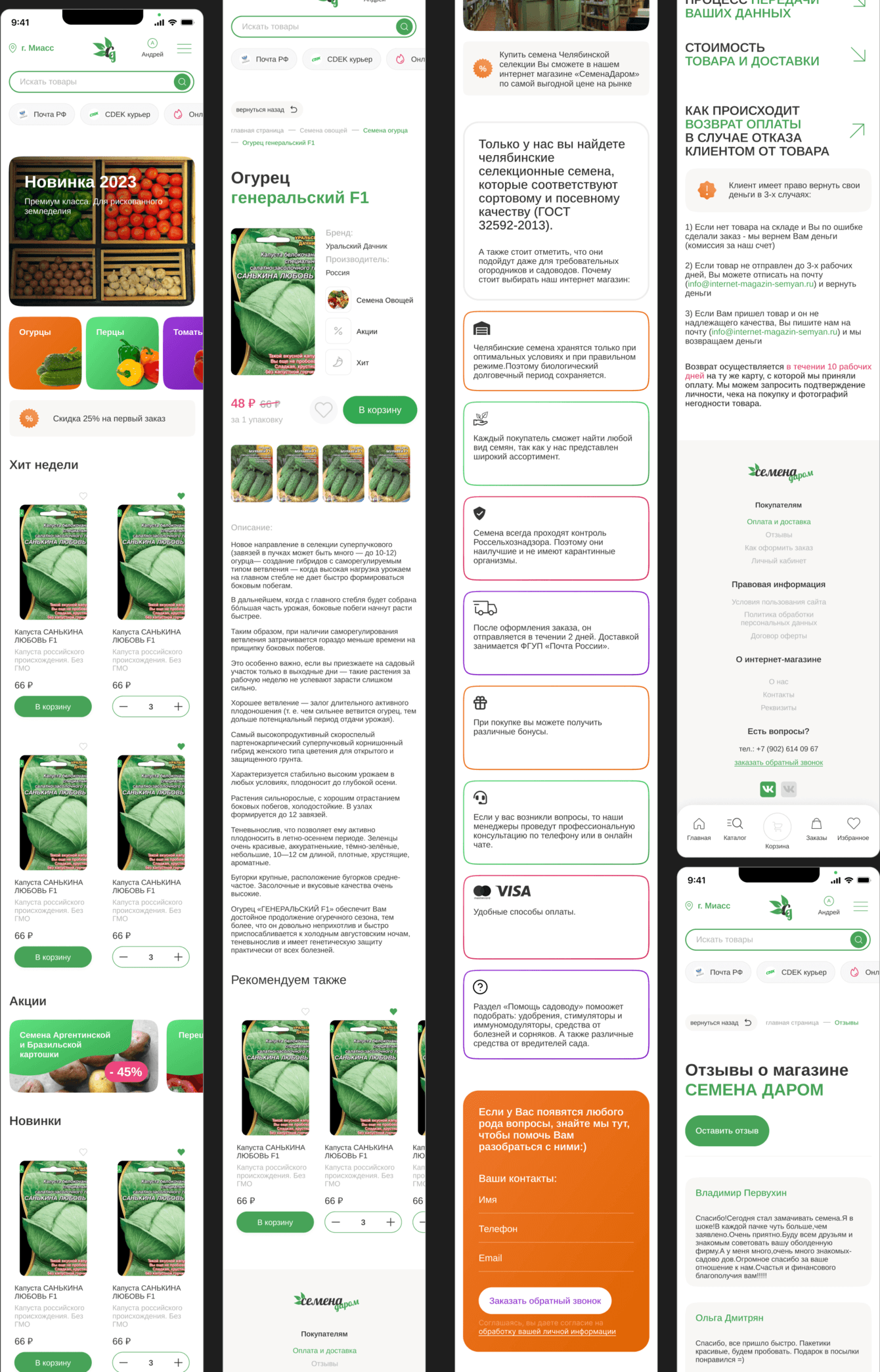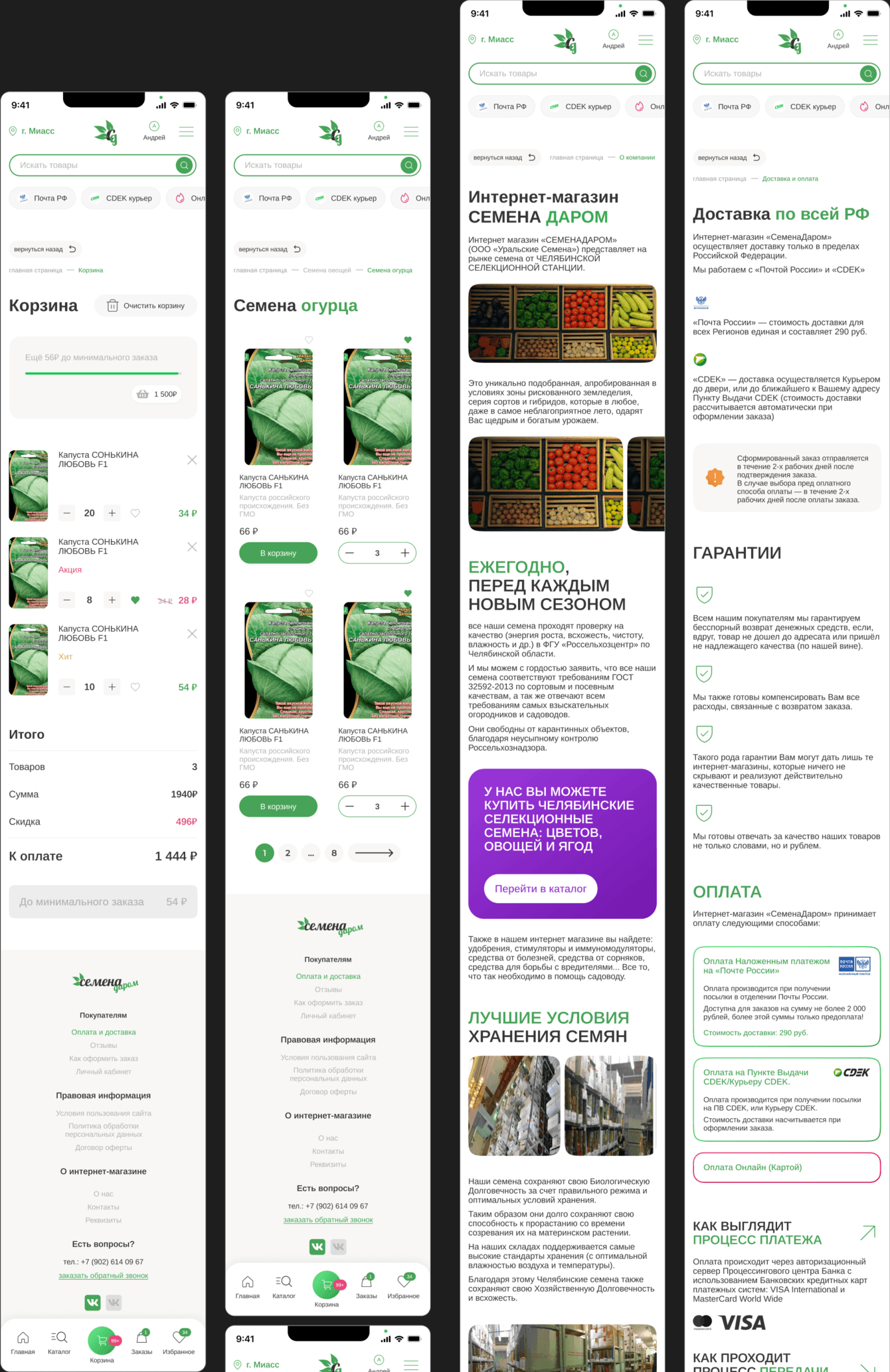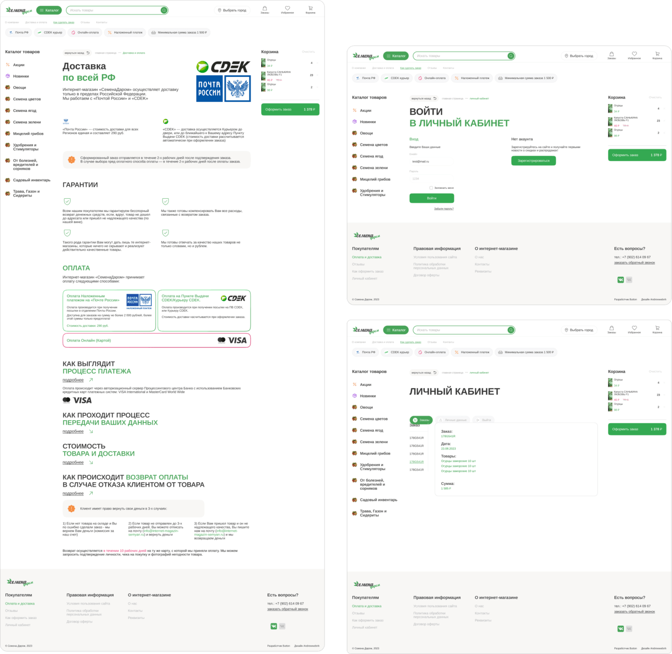 3. Третьим шагом была реализация макетов, частично опираясь на функционал сайта СЕМЕНАДАРОМ. Аналогия была сделана частична, но с переработкой некоторых идей. Было также были реализованы макеты и функционал по оформлению заказа, сделали их удобными и пошаговые формы. Также были реализованы макеты личного кабинета партнеров.
