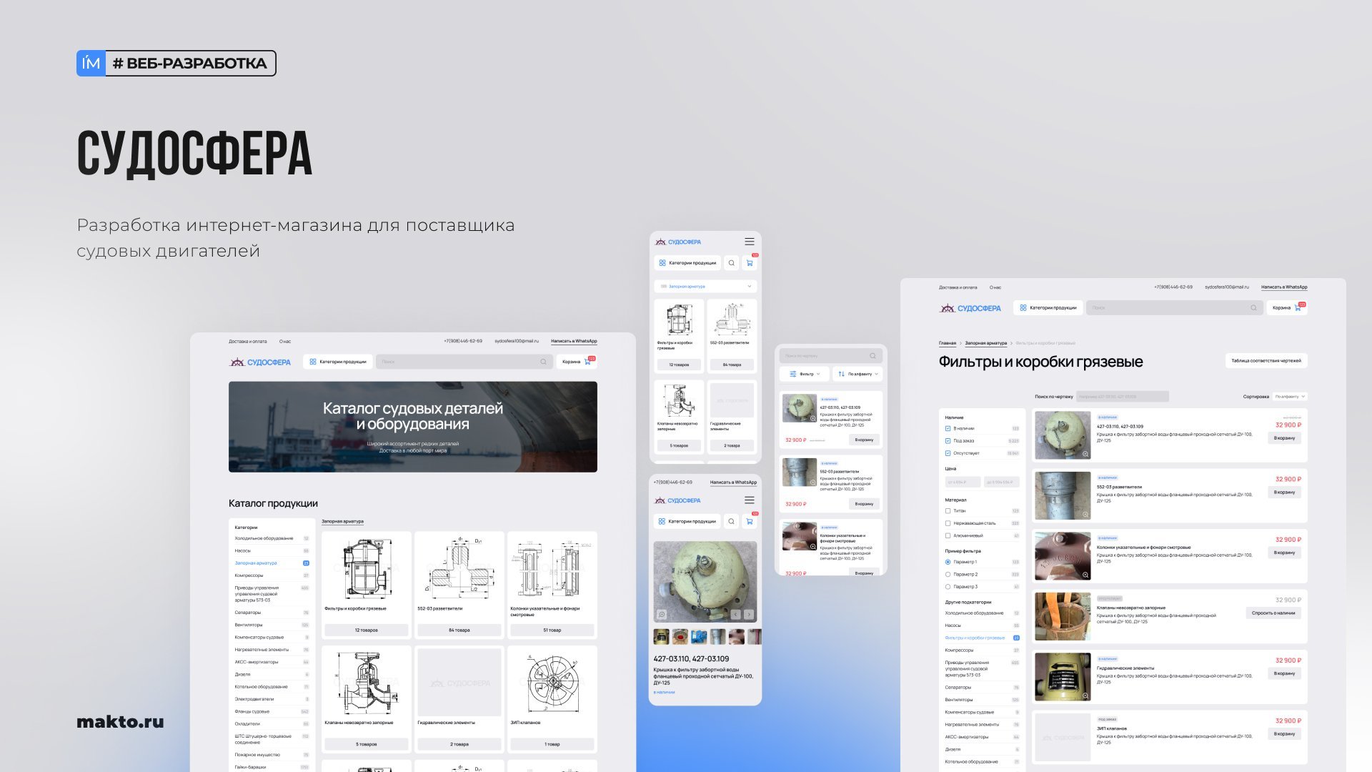Современный и минималистичный интернет-магазин для поставщика судовых двигателей Судосфера.