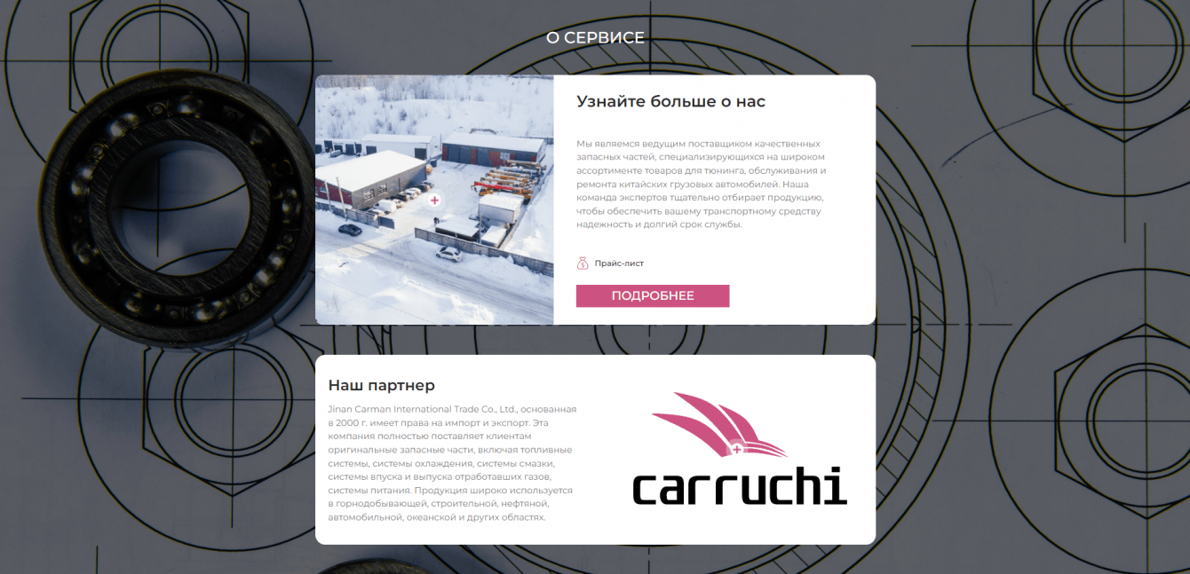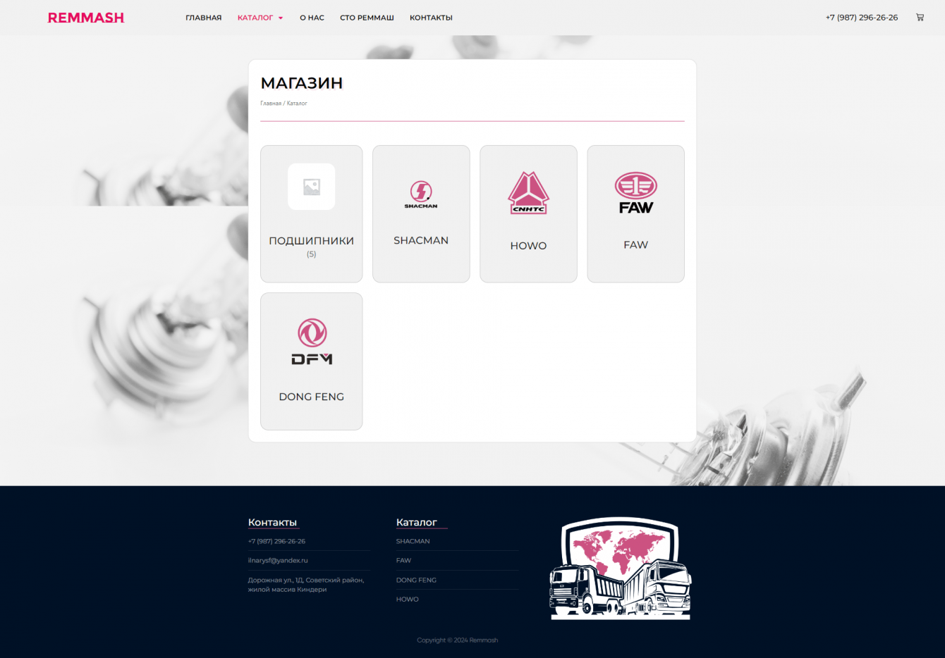 - Разработан функциональный каталог запчастей с удобной навигацией.