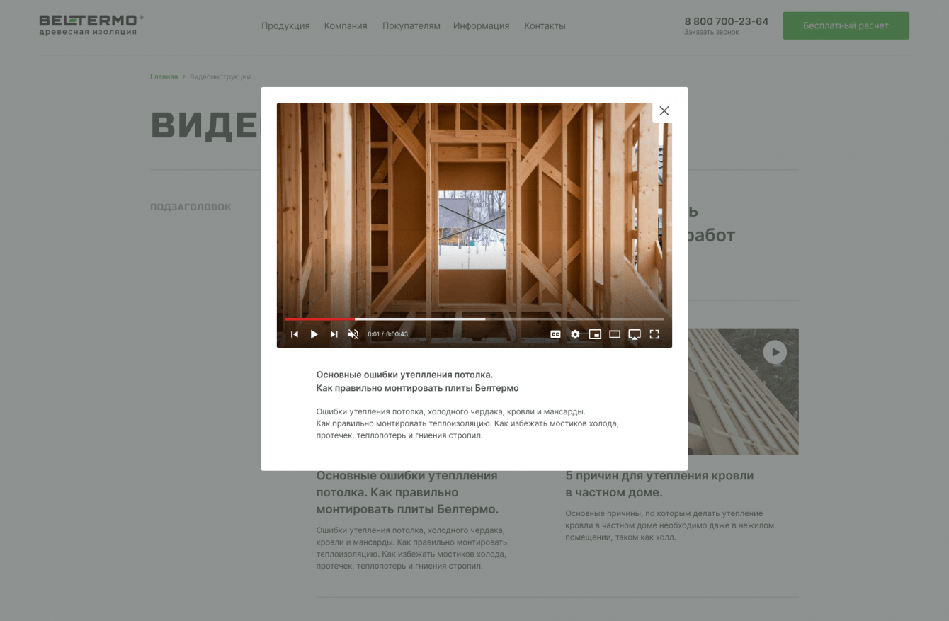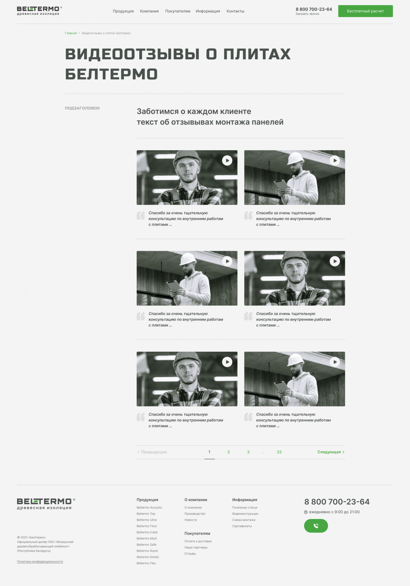 В сфере строительства и ремонта важную роль играет профессионализм. Поэтому было важно показать экспертность компании через разные виды контента. На сайте «БЕЛТЕРМО» потенциальные клиенты могут ознакомиться с сертификатами и историей компании, прочитать новости и полезные статьи, посмотреть видеоинструкции и видеоотзывы.