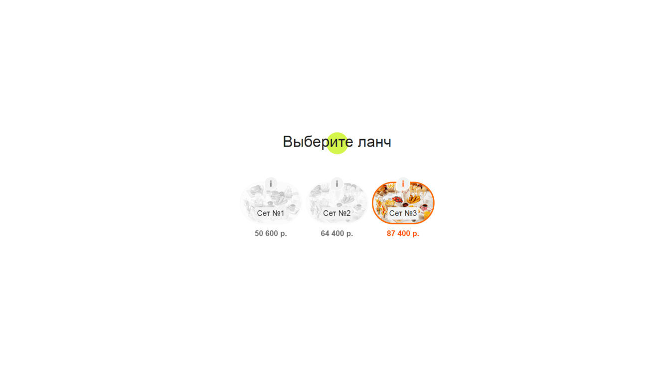 Клиент получает возможность выбрать оформление согласно одному из пакетов заказчика, собрать оформление самому или отказаться от оформления.