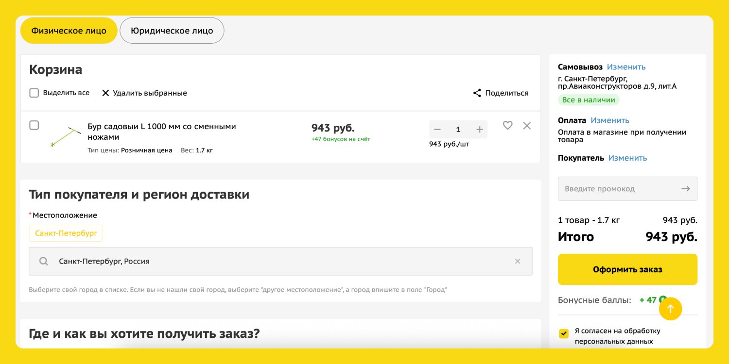 Основной запрос – сделать оформление заказа и корзину удобными и функциональными при большом количестве магазинов и вариантов доставки.