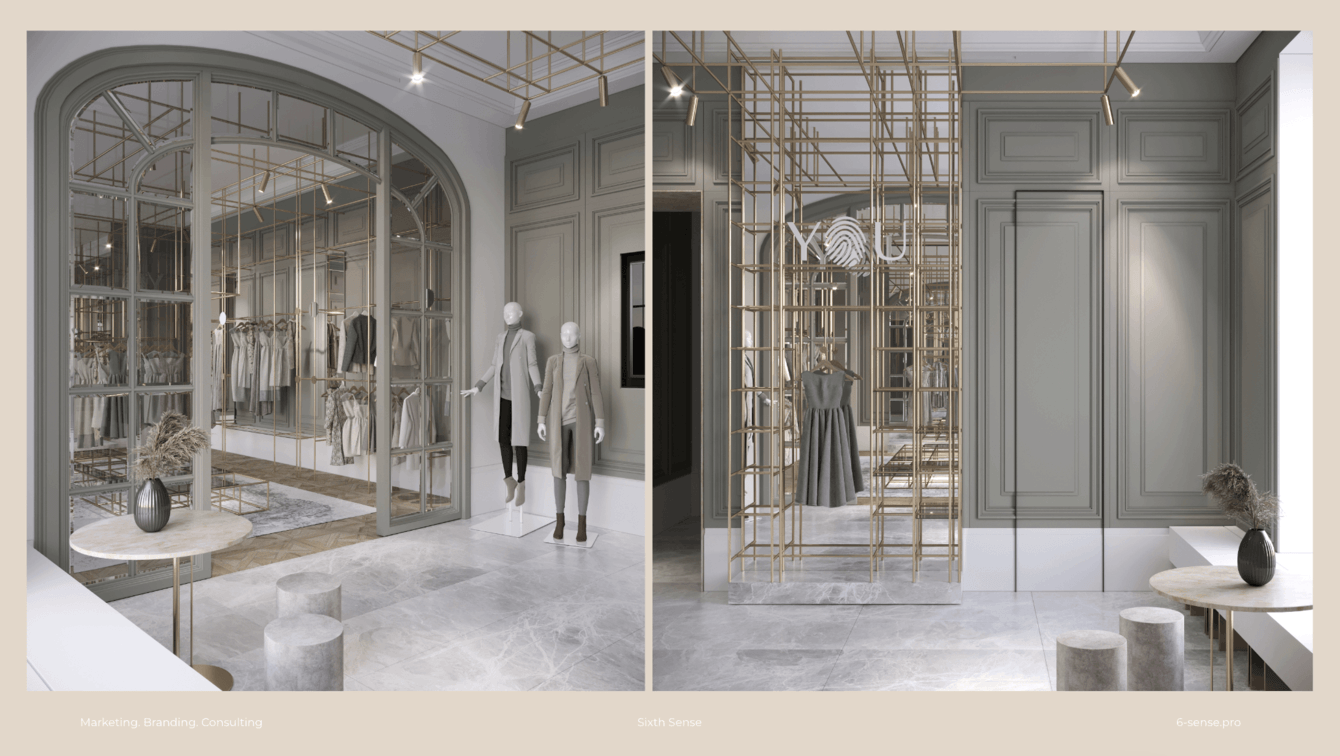 Флагманское пространство бренда YOU визуально погружает нас в атмосферу города. В концепции пространства отражены основные визуальные инстайты города. Санкт-Петербург живет в «вечной реконструкции», но за фасадами и скрытыми лесами, находятся объекты искусства, изысканный декор и история места.