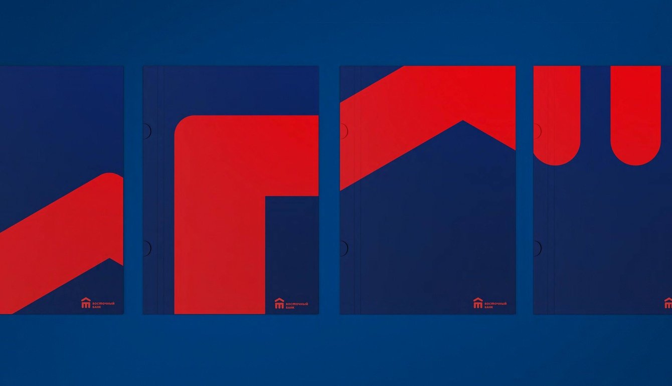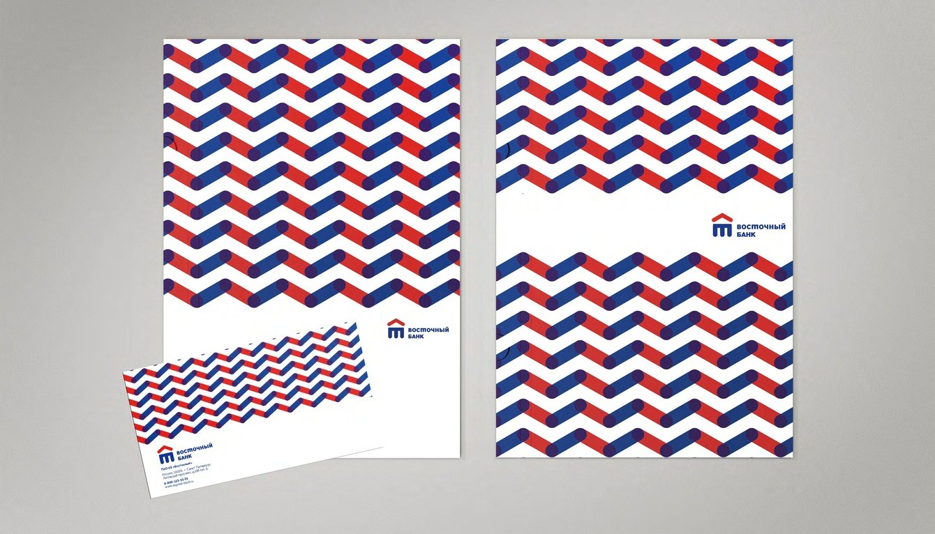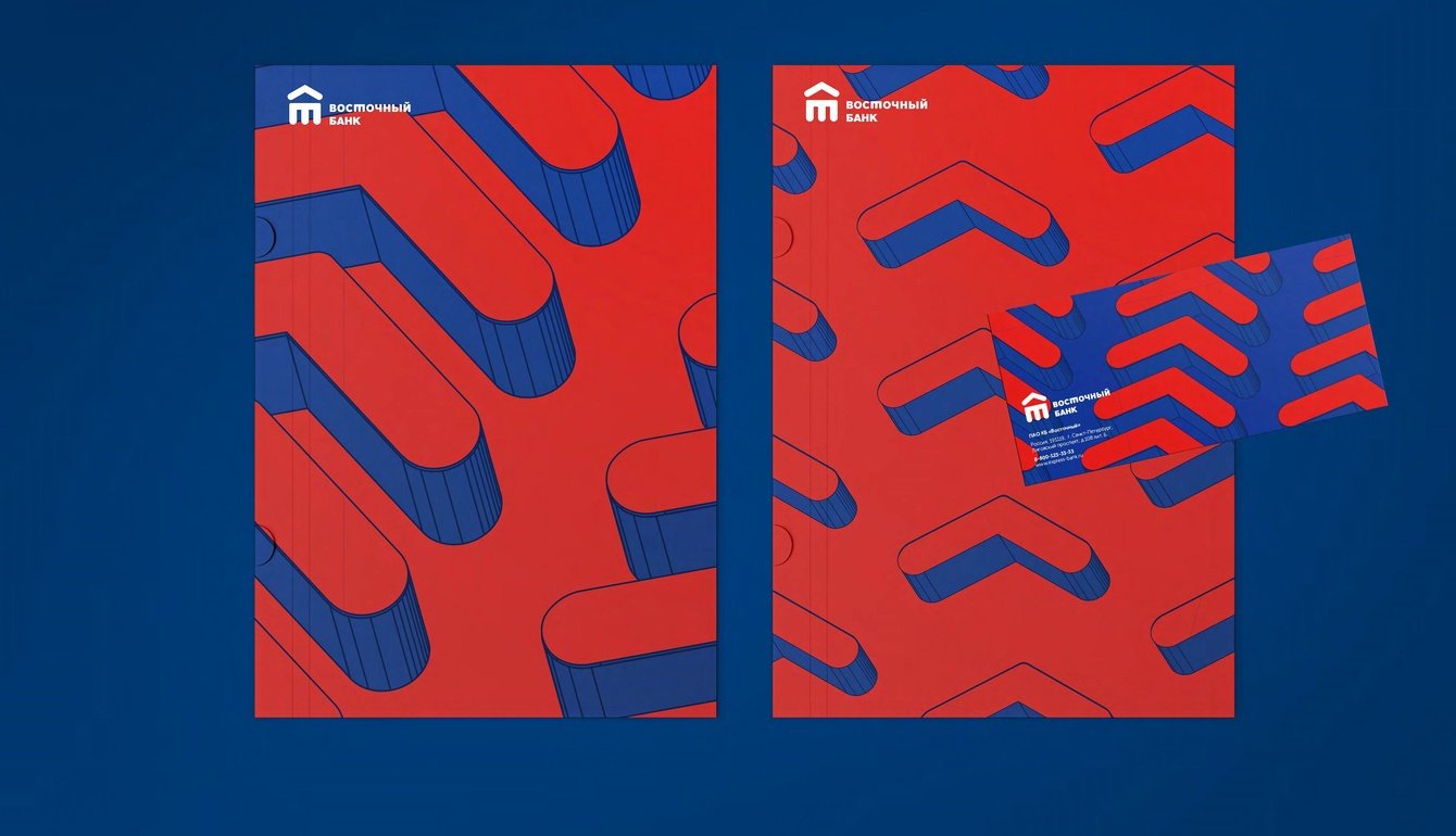 Вариант о надёжности и устойчивости. На основе элементов, составляющих фирменный знак банка, собрана узнаваемая айдентика глубоких насыщенных цветов. Элементы знака работают в крупном размере, организуя весь фирменный стиль, диктуя принципы верстки и модульность всех носителей. Подобный принцип работы с графическими элементами — яркий, запоминающийся, современный — говорит о надежности, стабильности и масштабности банка.