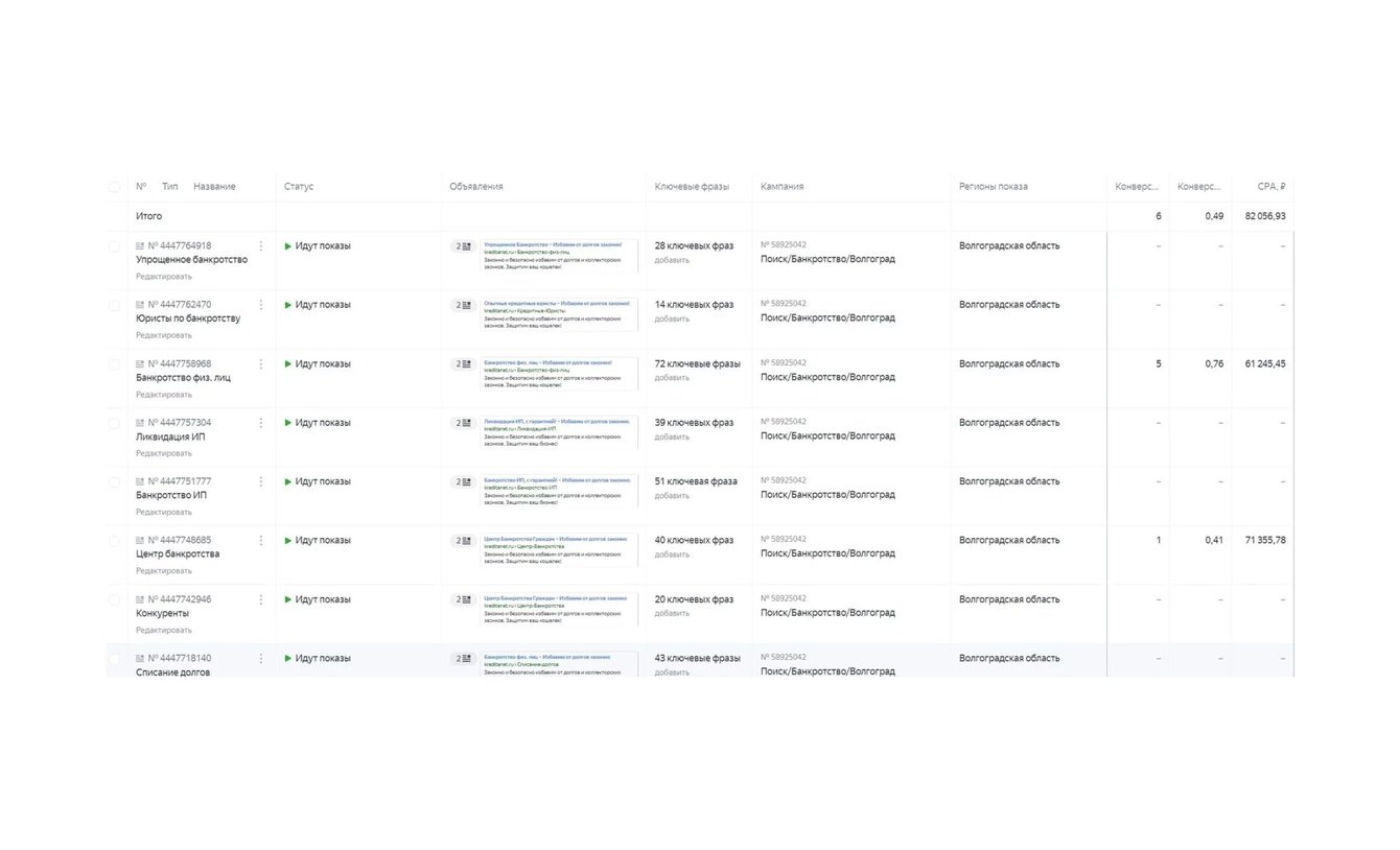 После этого решили, что будем делать всё с нуля. Продумали аудиторию, собрали огромное семантическое ядро. Ядро состояло из целевых и околоцелевых запросов. Например, целевой запрос = банкротство физ. лица. Околоцелевой – «звонят коллекторы, что делать» или «не чем платить кредит, что делать» и т.д.
