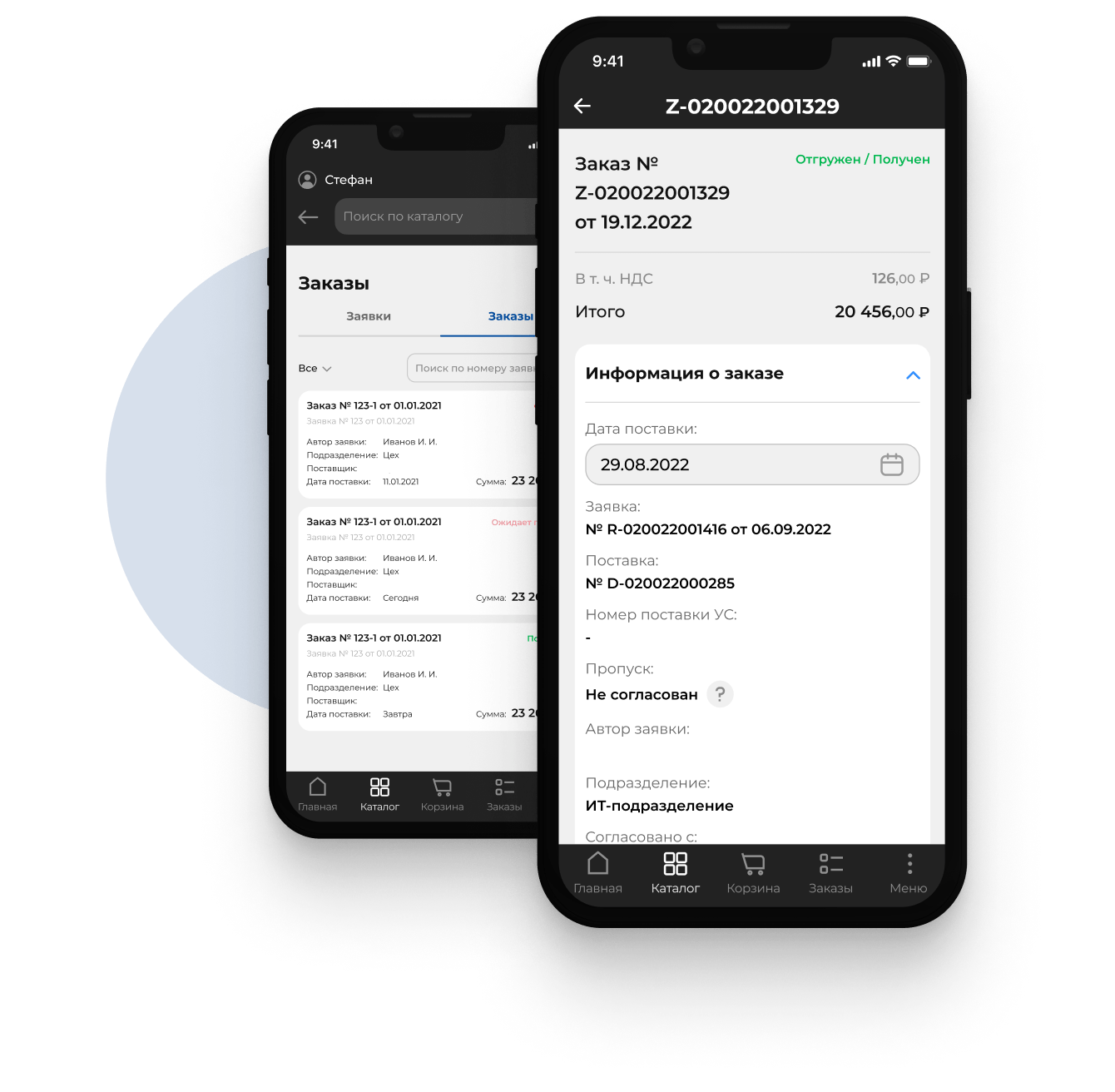 Выбор места доставки (склад, цех, офис и др.);