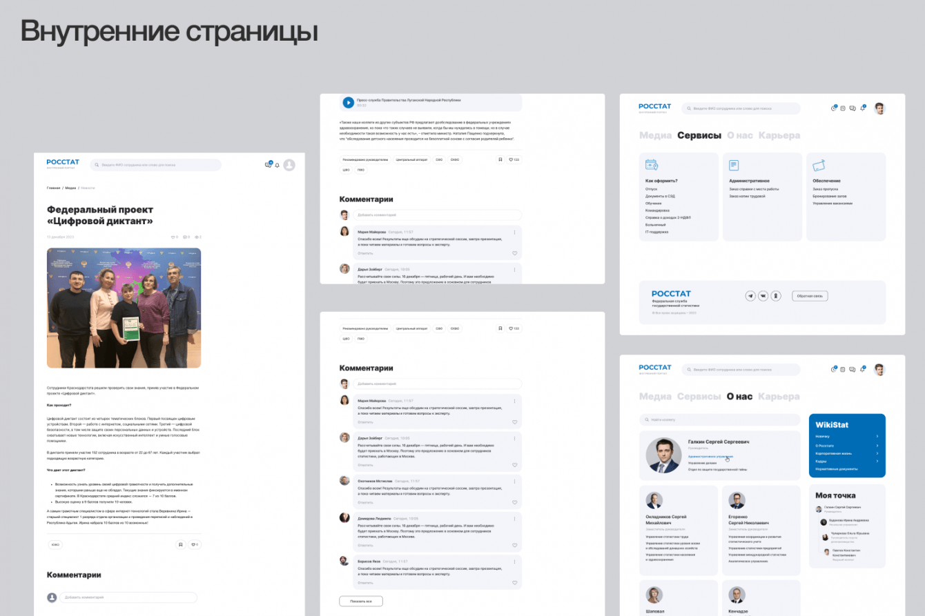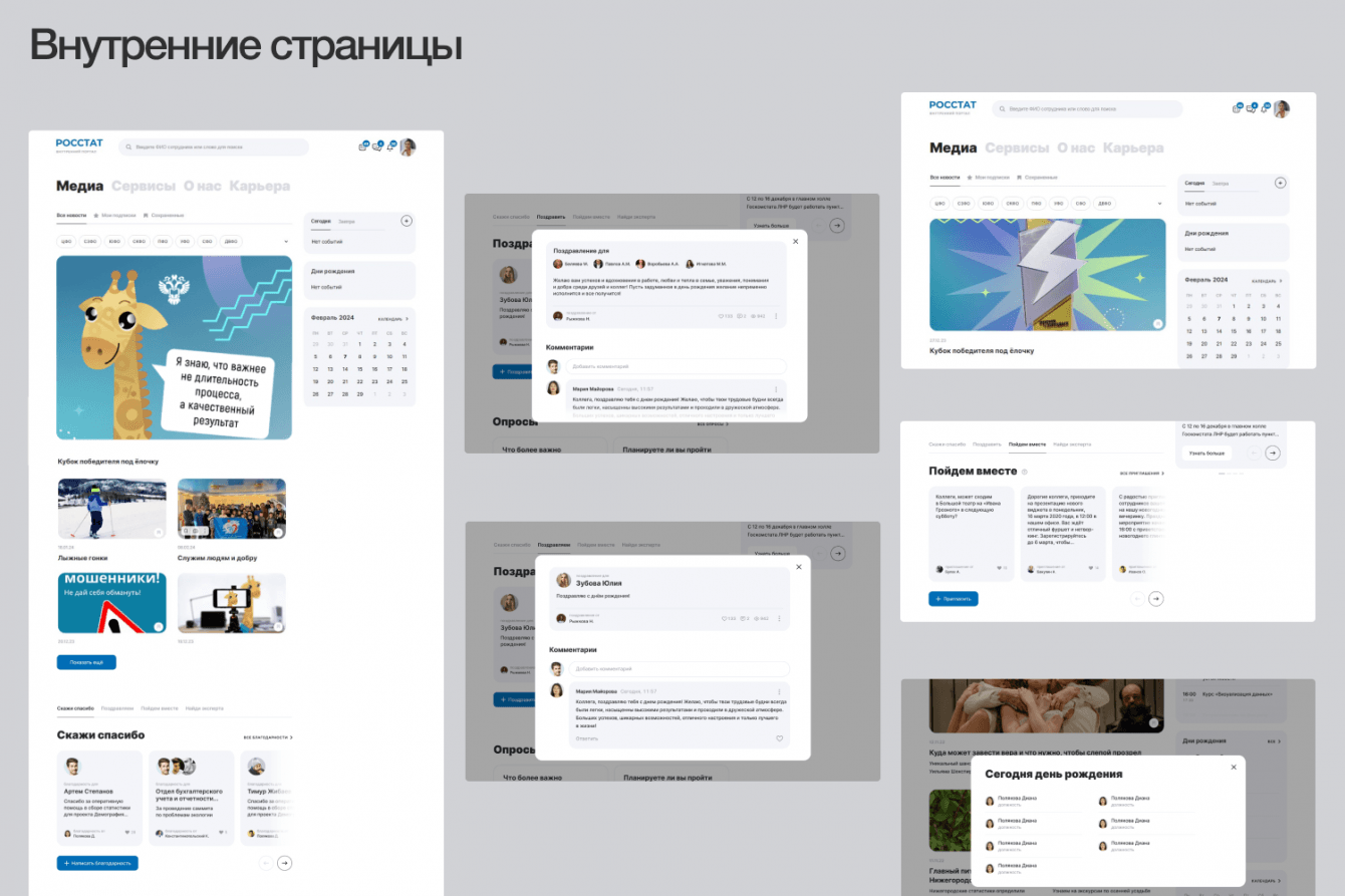 Когда сотрудник открывает главную страницу, он будто оказывается в гуще корпоративных событий. Для создания эффекта вовлечения мы использовали паттерны новостных сайтов. По сути это полноценное интранет-медиа о жизни Росстата.