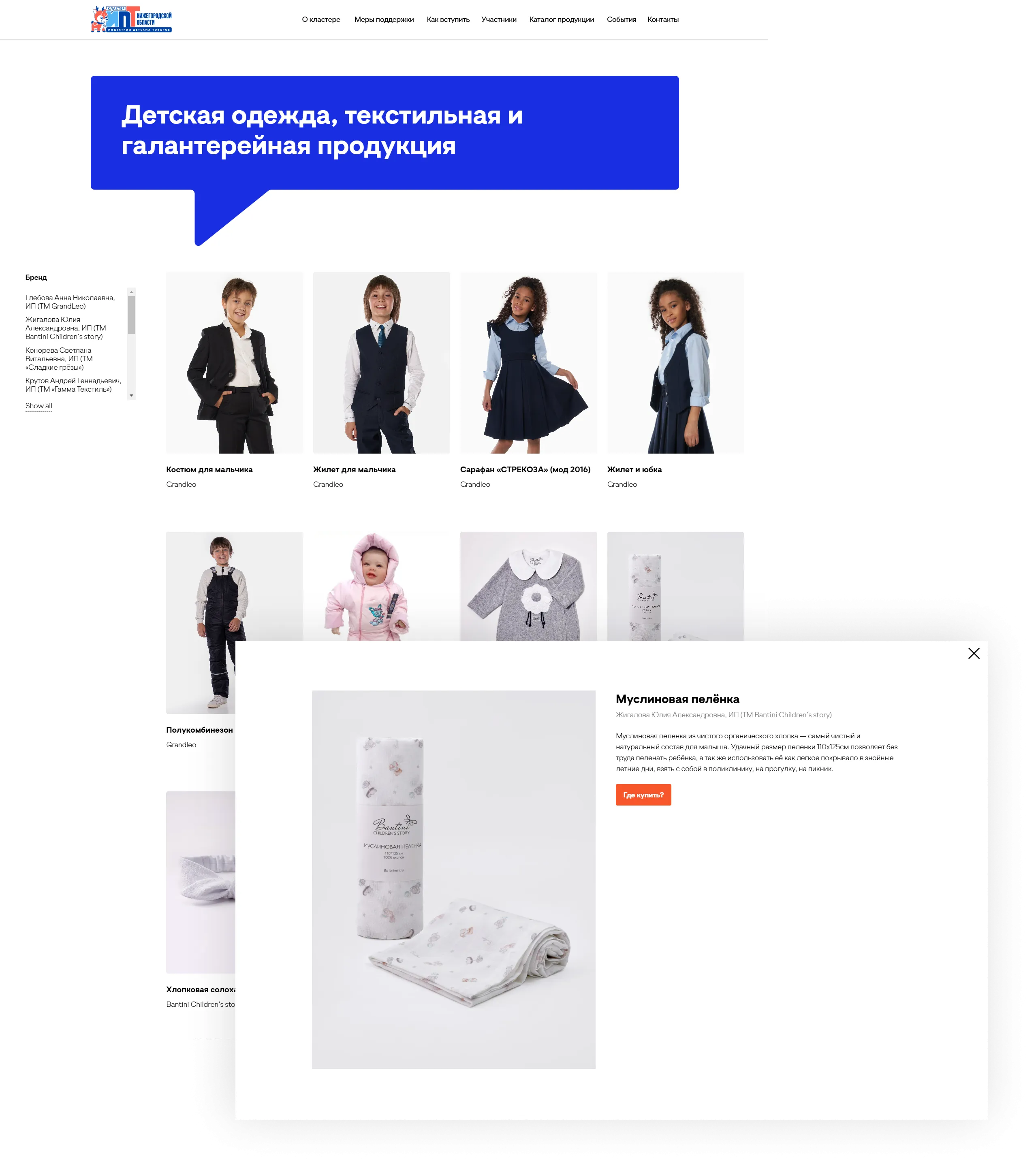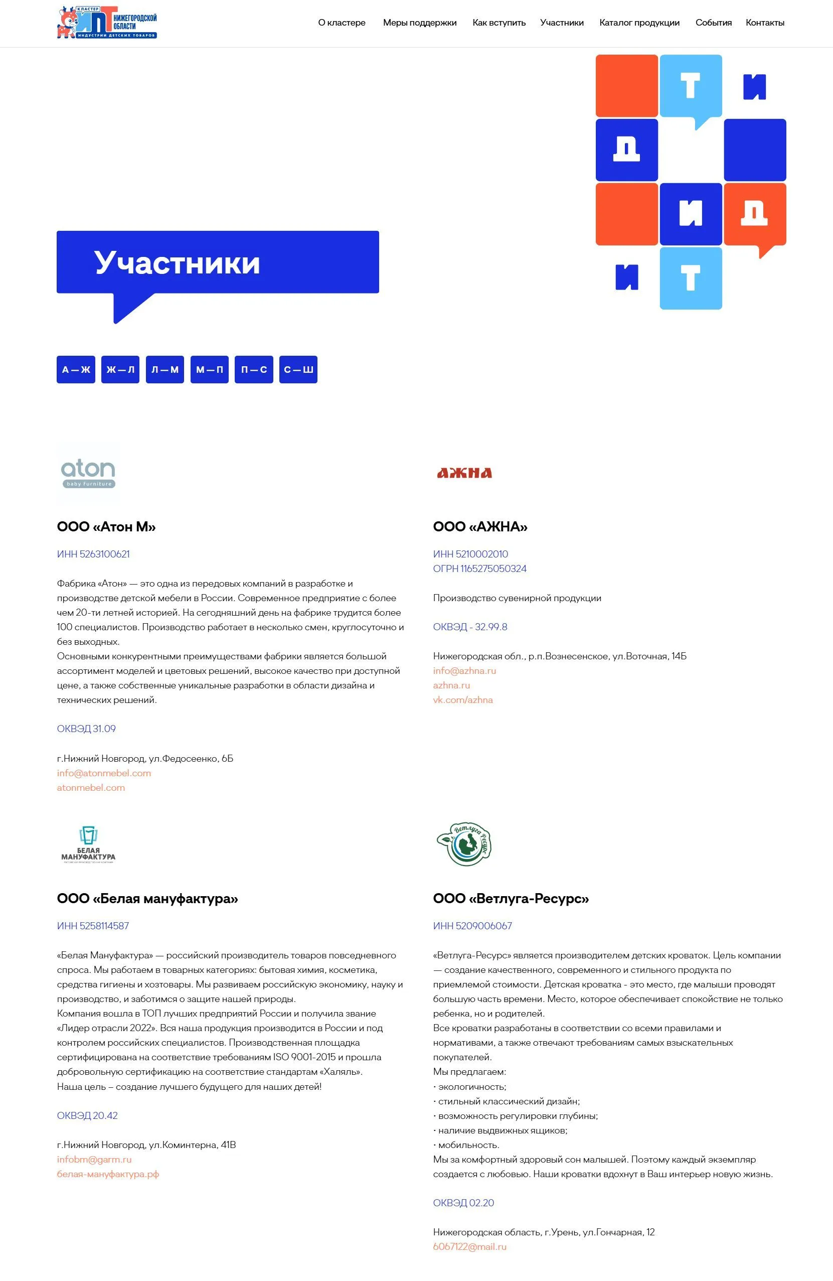 — Раздел "Участники кластера", где будут представлены компании-участники с кратким описанием их деятельности и ссылками на их сайты;