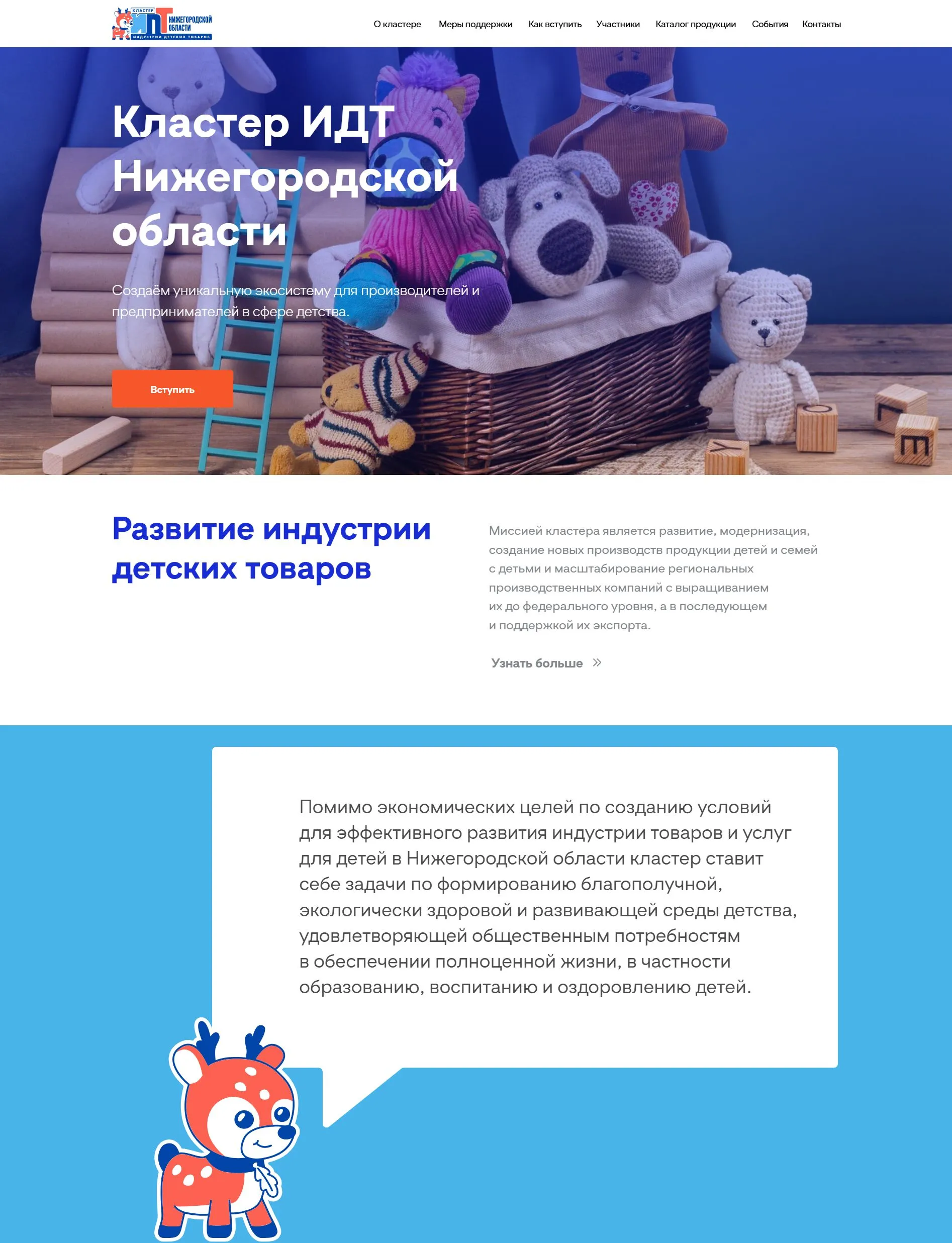 — Главная страница с информацией о кластере, его целях и достижениях;