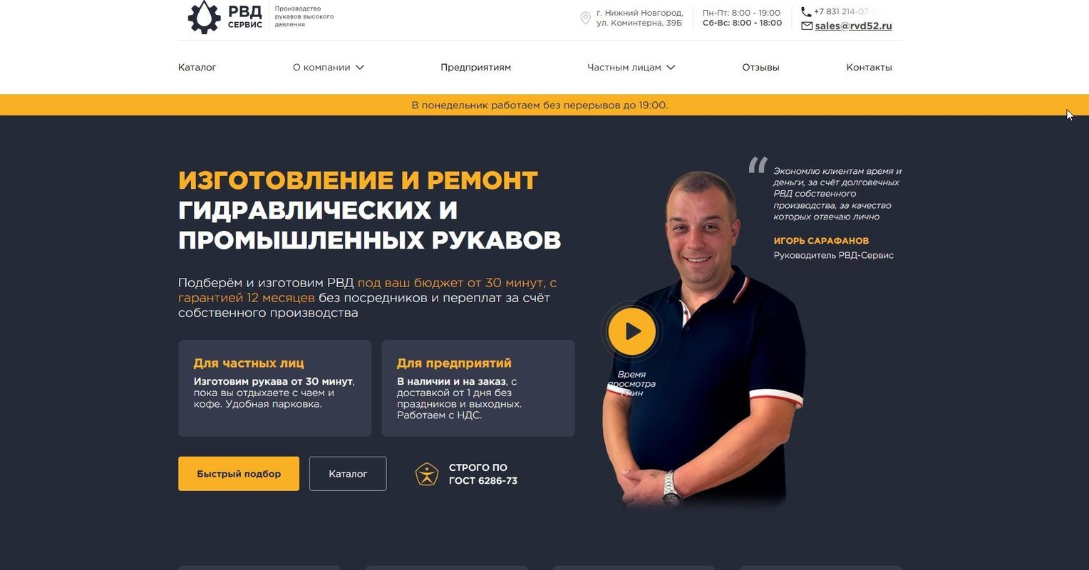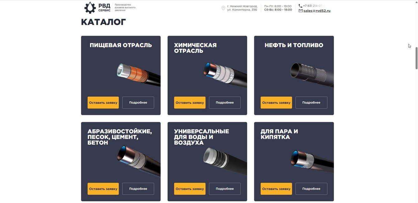 Сайт с каталогом продукции и возможностью оставить заявку на конкретную номенклатурную единицу. Проделано большое количество доработок для повышения конверсии и улучшения показателей маркейтинговых воронок. На сайте установлены динамическая подмена номеров и email адресов для идентифицирования уникальных сессий пользователей.