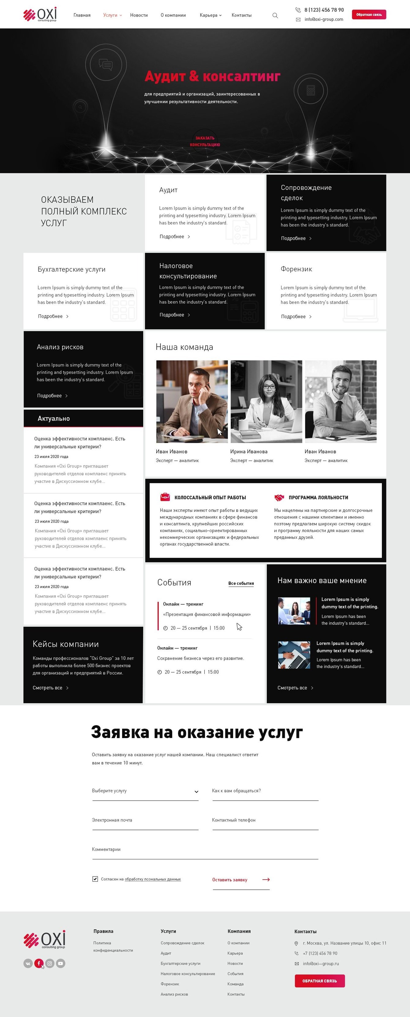 Разработать сайт для компании, предоставляющей услуги аудита и консалтинга, а также полный комплекс услуг по сопровождению сделок. Выйти на KPI.