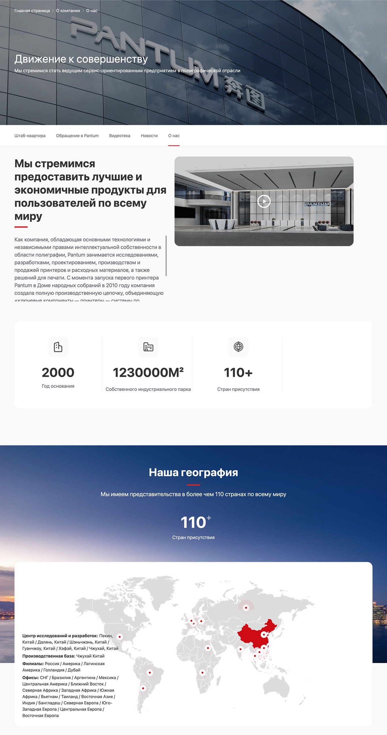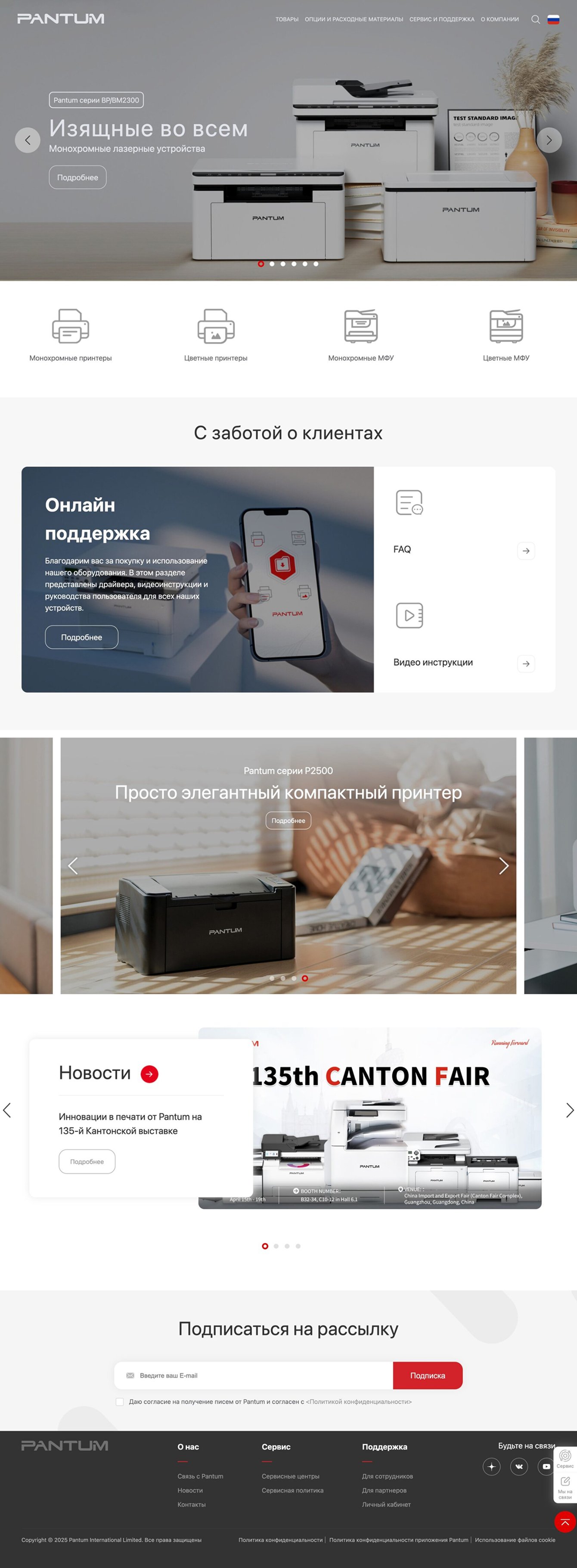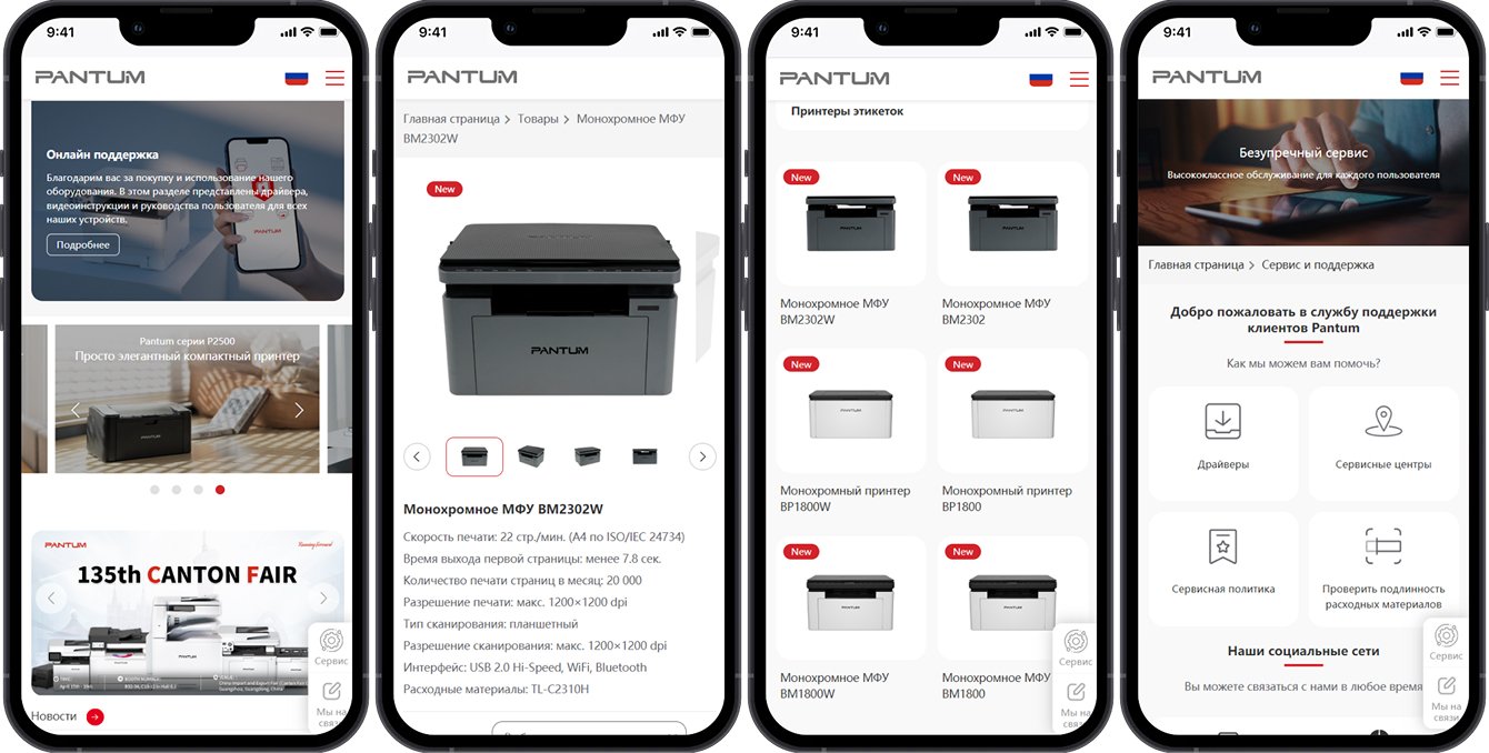 Разделы о компании Pantum предлагают подробную информацию о бренде, его миссии и ценностях.