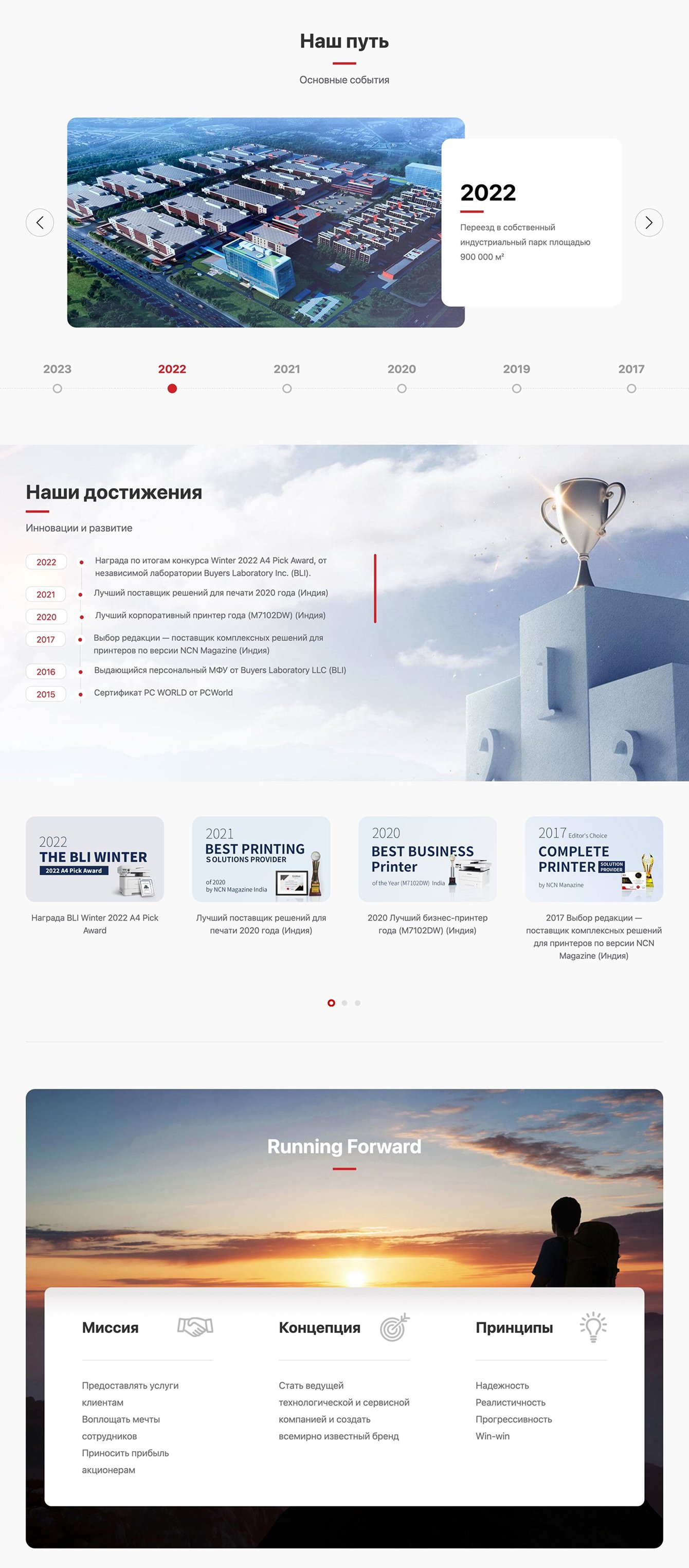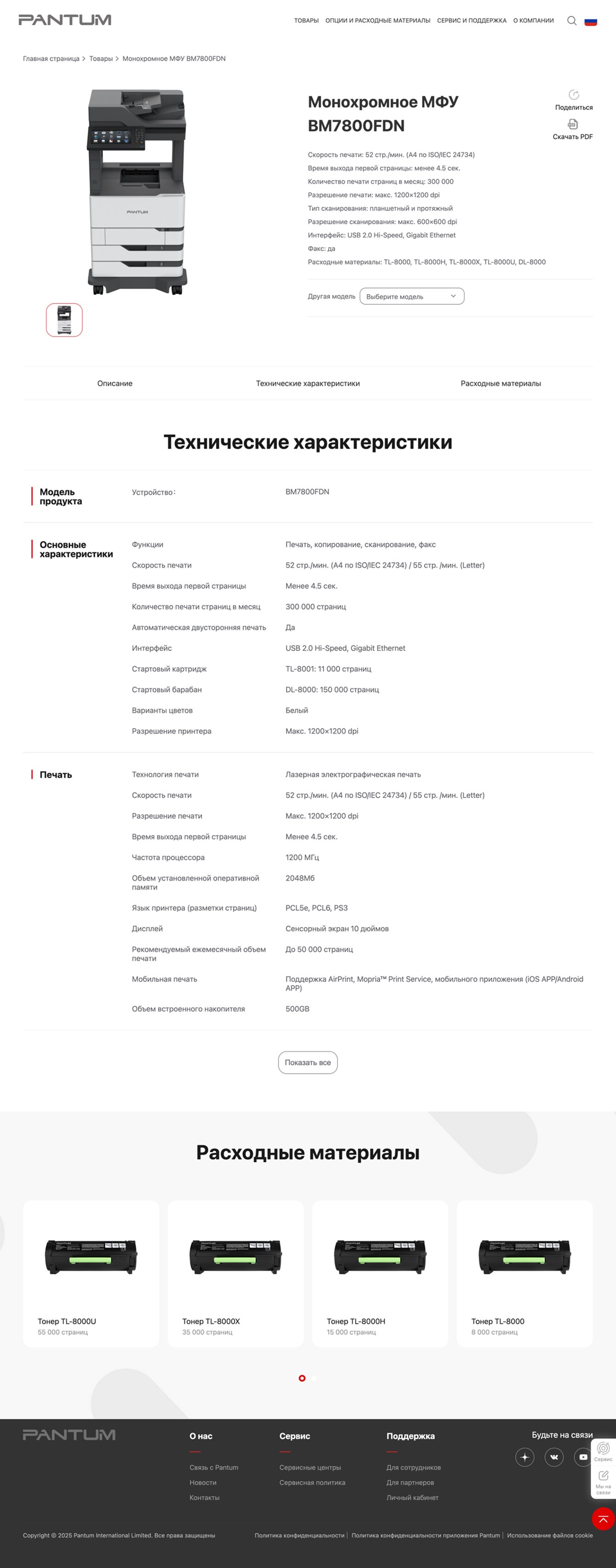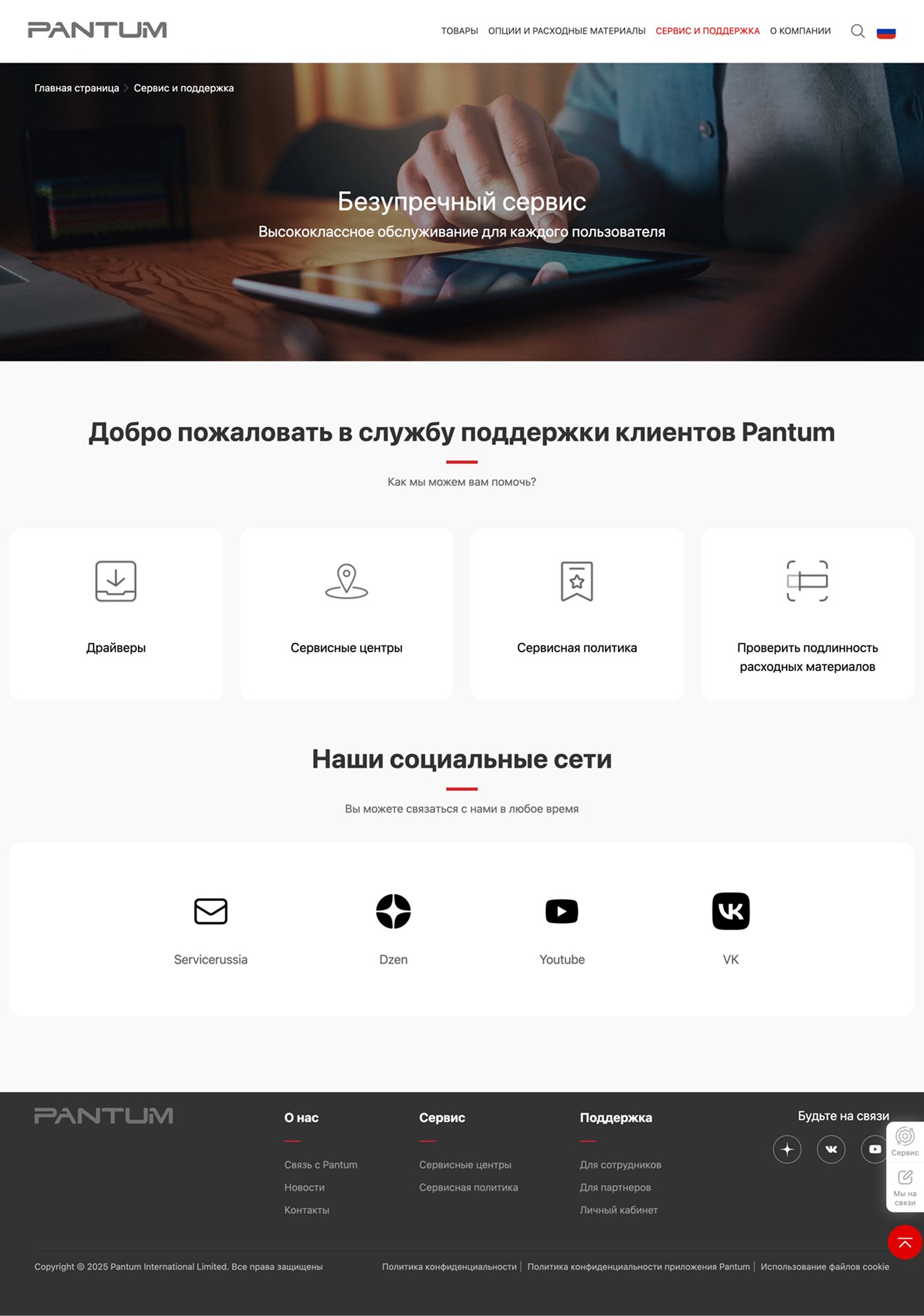 Разделы о компании Pantum предлагают подробную информацию о бренде, его миссии и ценностях.