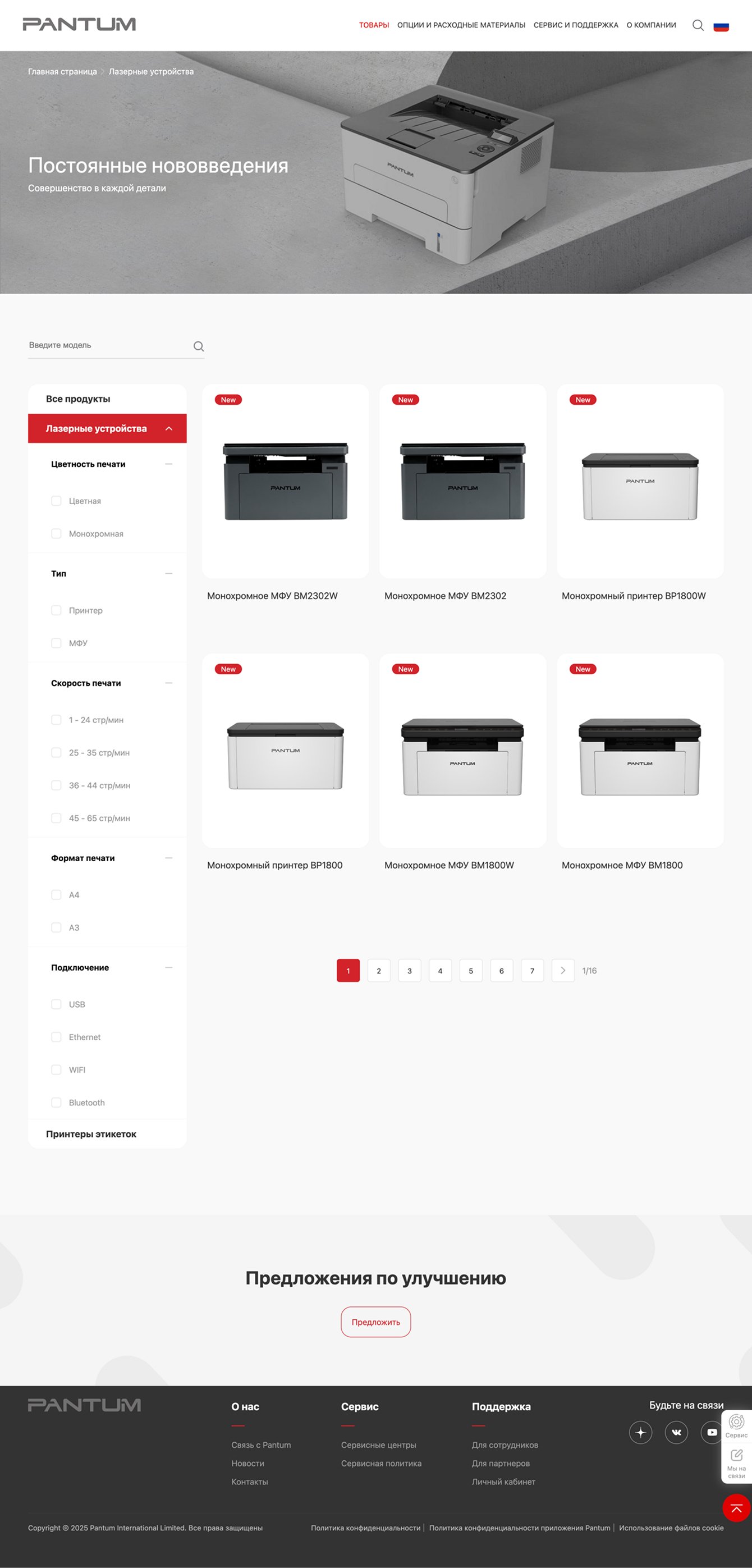Предоставляет удобный доступ к ассортименту лазерных устройств Pantum.