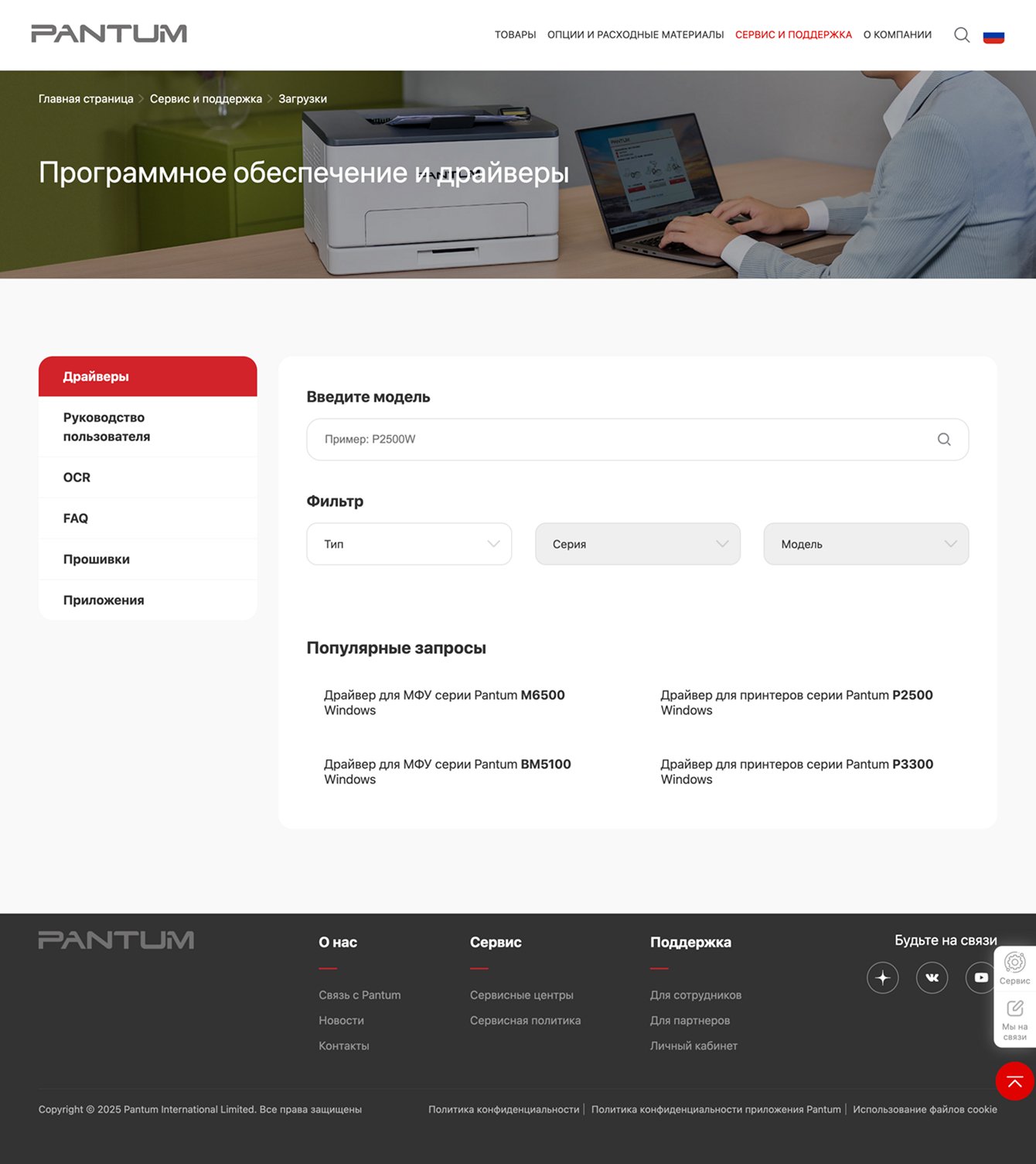 Подразделы данного раздела поддержки предлагают клиентам комплексную помощь в использовании продукции Pantum.