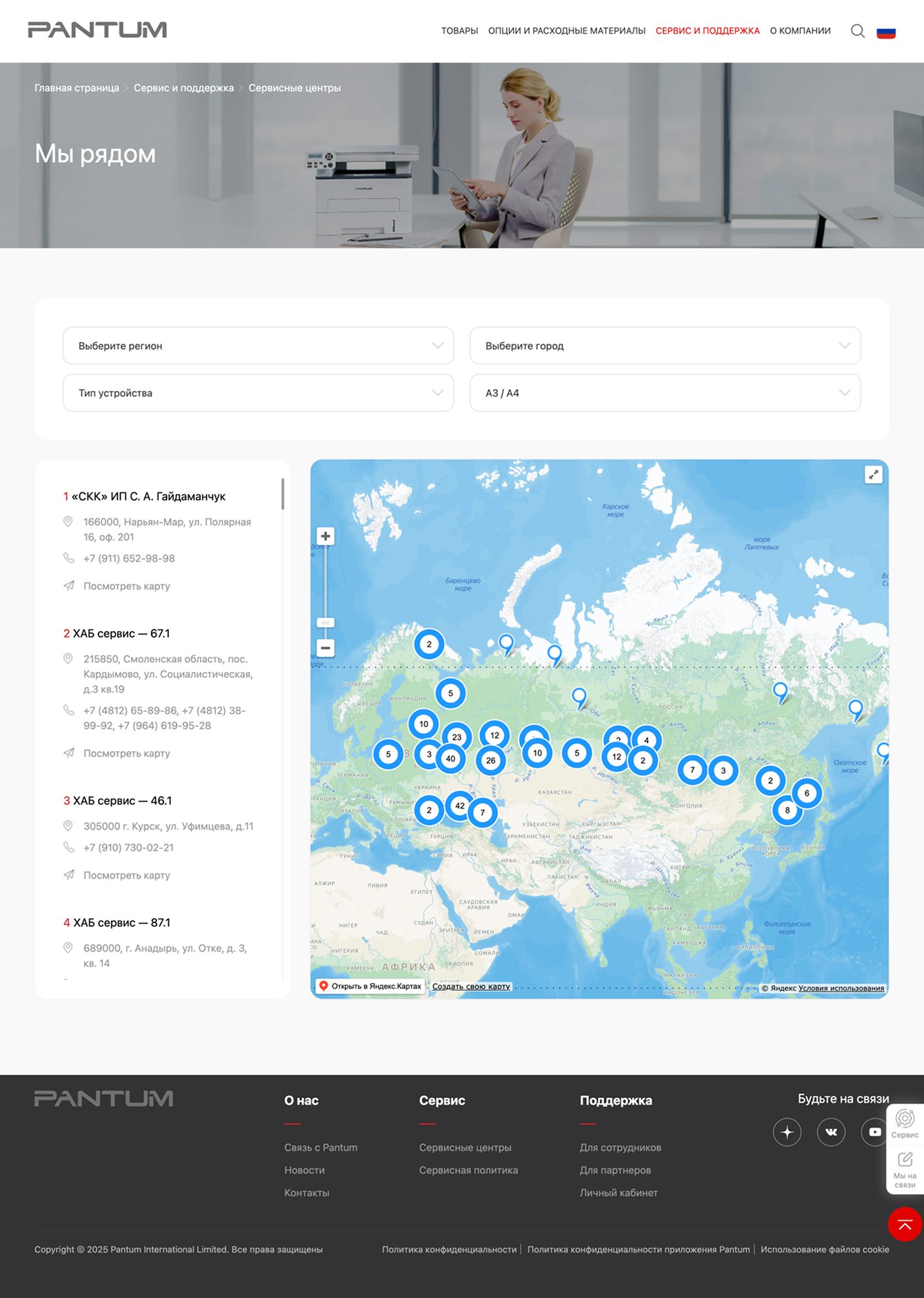 Предоставляет клиентам удобный инструмент для поиска ближайших авторизованных центров обслуживания Pantum.