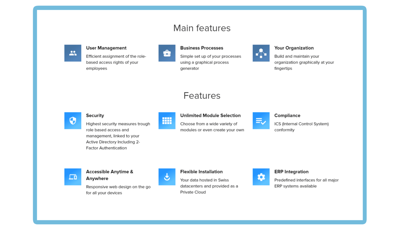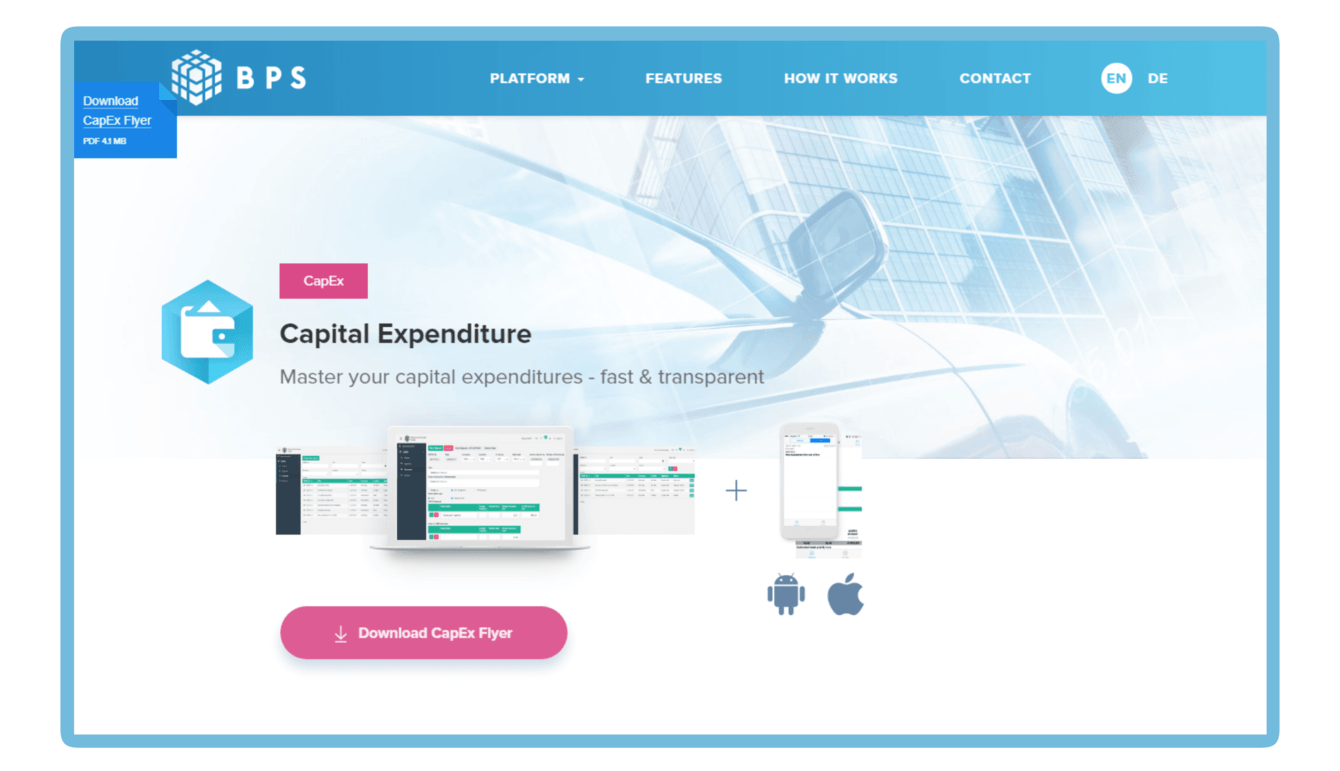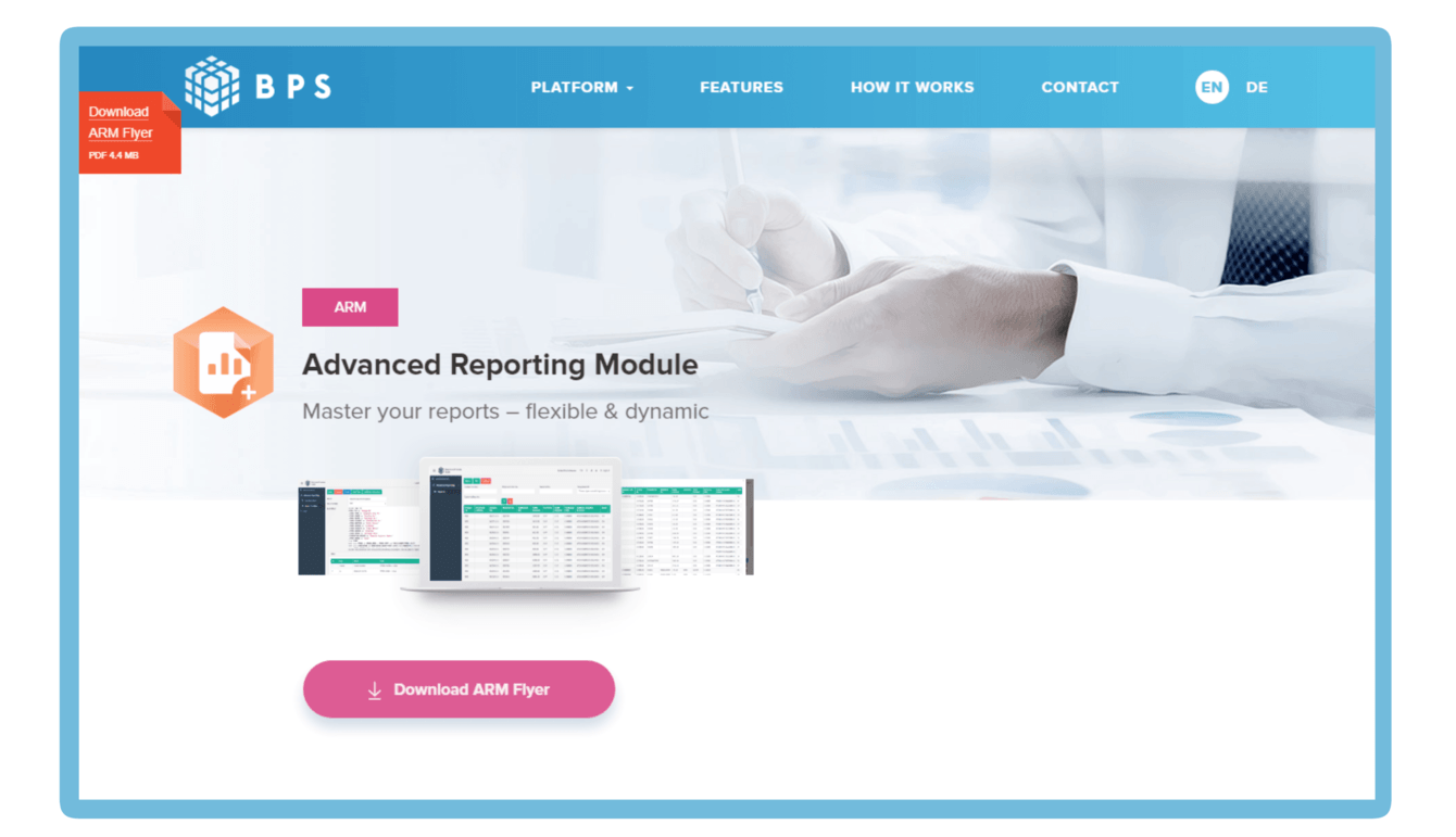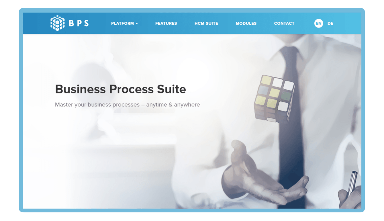 Клиент - швейцарский ИТ-интегратор. Ему требовалось разработать сайт для программного продукта BPS. Это модульная система для автоматизации бизнеса. Система охватывает все бизнес-процессы среднего и крупного бизнеса: учет капитальных и операционных затрат, задач и рабочего времени сотрудников; хранение персональных данных, формирование счетов и отчетов; управление ассортиментом и складом.