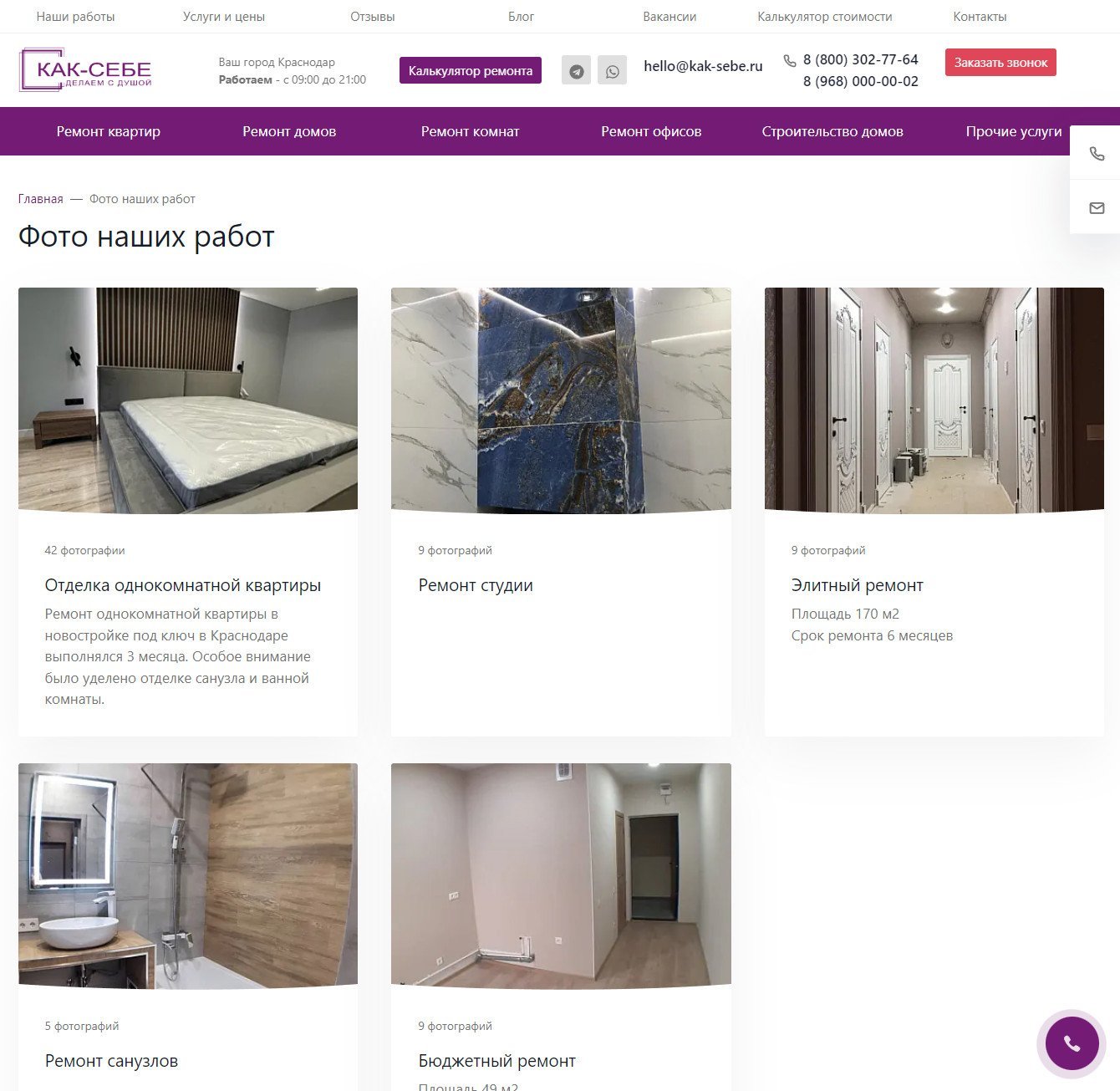 Альбомы можно организовать по видам услуги, по объектам, по категории.