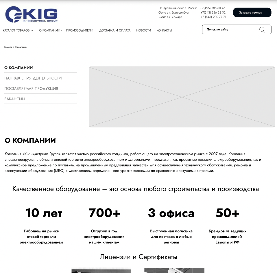 Главной целью создания нового сайта для компании К-Индастриал Групп стало улучшение пользовательского опыта и увеличение конверсии продаж.