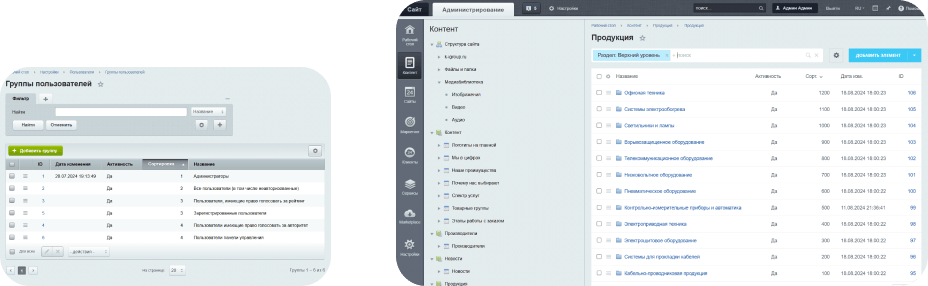 Внедрение системы управления сайтом (CMS 1C-Битрикс) позволило сократить время на обновление контента, быстро наполнять информацию о товарах, добавлять новые статьи и новости, что значительно сократило время на администрирование сайта.
