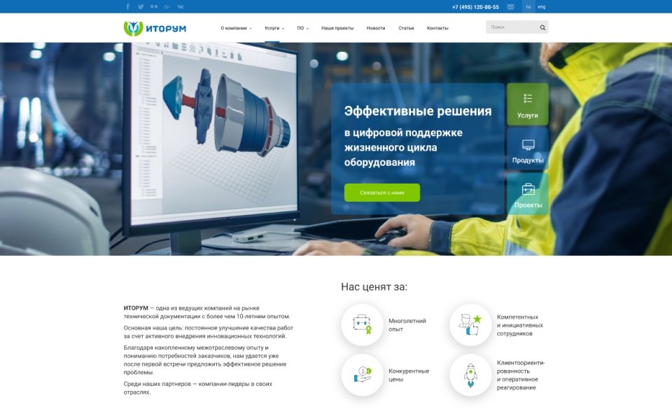 Требовалось разработать новый сайт на базе Wordpress для компании Иторум, которая занимается разработкой технической документации и информационной поддержкой жизненного цикла изделий. Одно из основных требований: на базе аудита старого сайта подготовить новый сайт к полноценному SEO-продвижению.