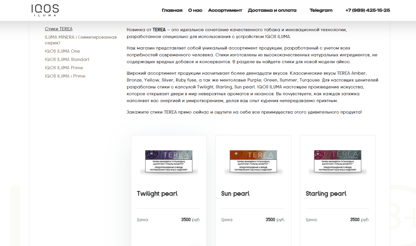 Страница каталога продукции.