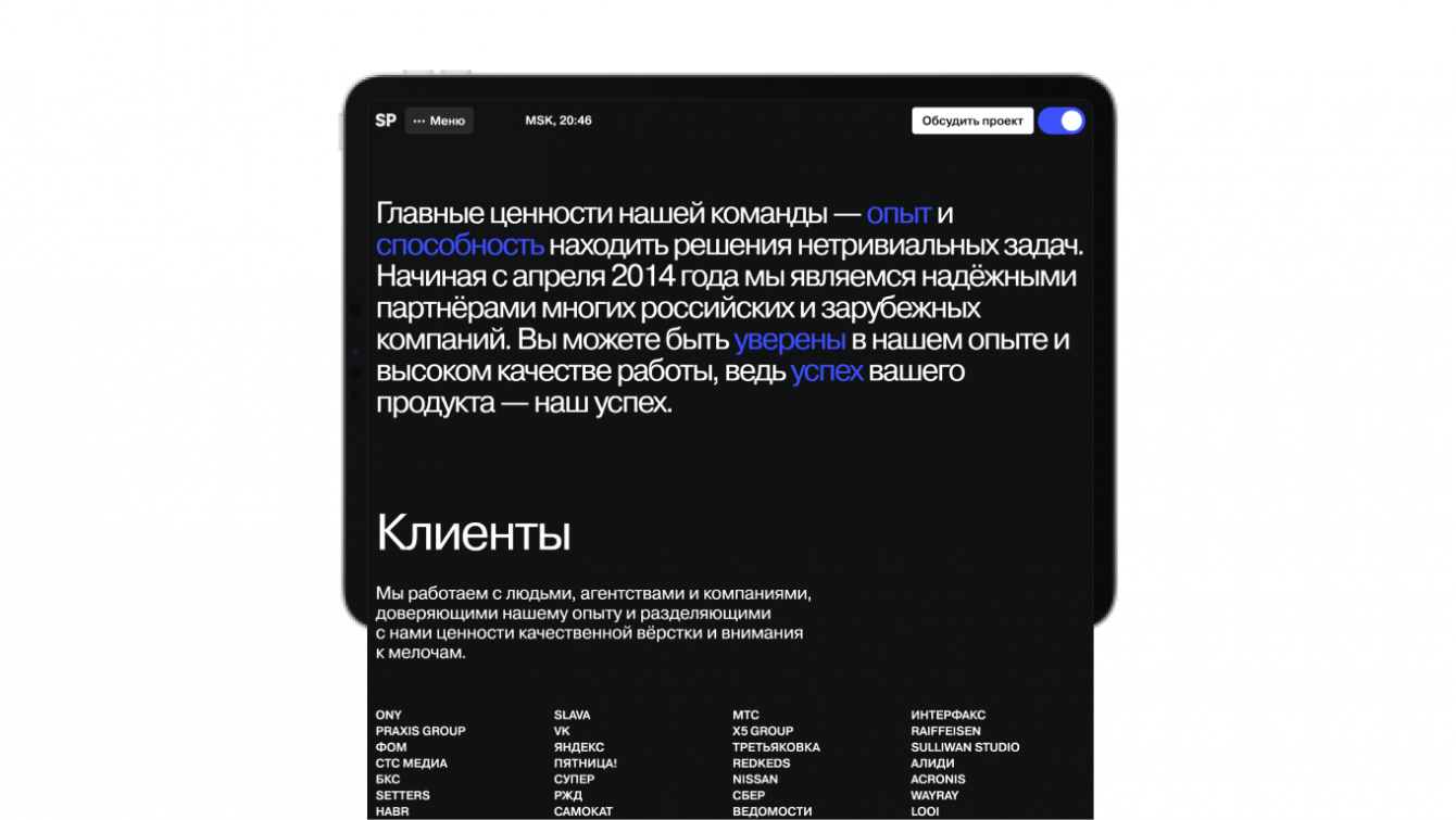 Проблема бизнеса: раньше презентации компании для новых клиентов проводил CEO в ручном режиме, и это не позволяло бизнесу масштабироваться. Не было сайта с проектами, который уместно было бы показать любому потенциальному клиенту при первом контакте.