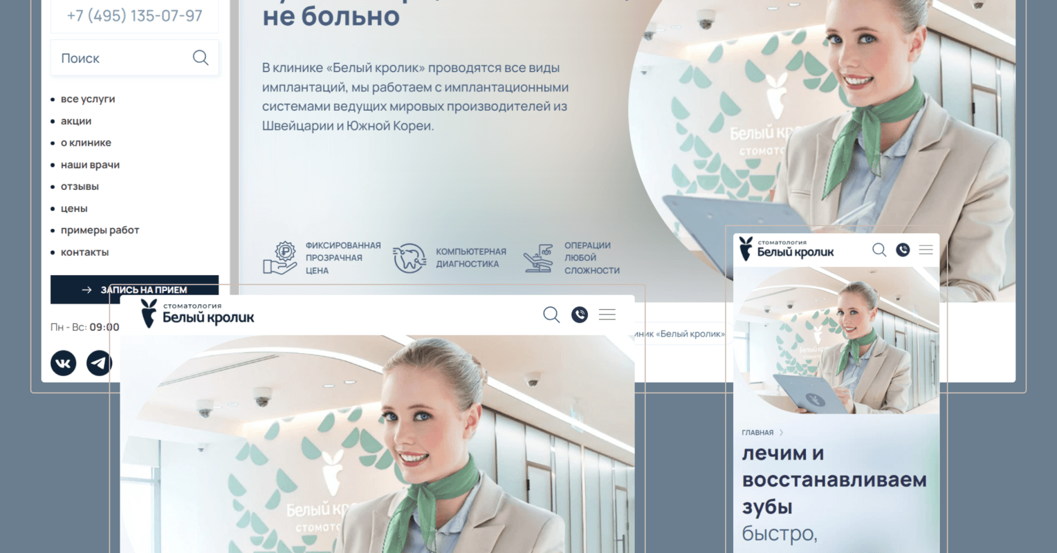Необходимо разработать современный и удобный корпоративный сайт для сети стоматологических клиник «Белый Кролик», обеспечивающий комфортное взаимодействие пациентов с услугами клиники, доступ к необходимой информации и возможность быстрого бронирования приемов. Сайт должен быть построен на современных технологиях и обеспечивать удобство как для конечных пользователей, так и для специалистов клиники.