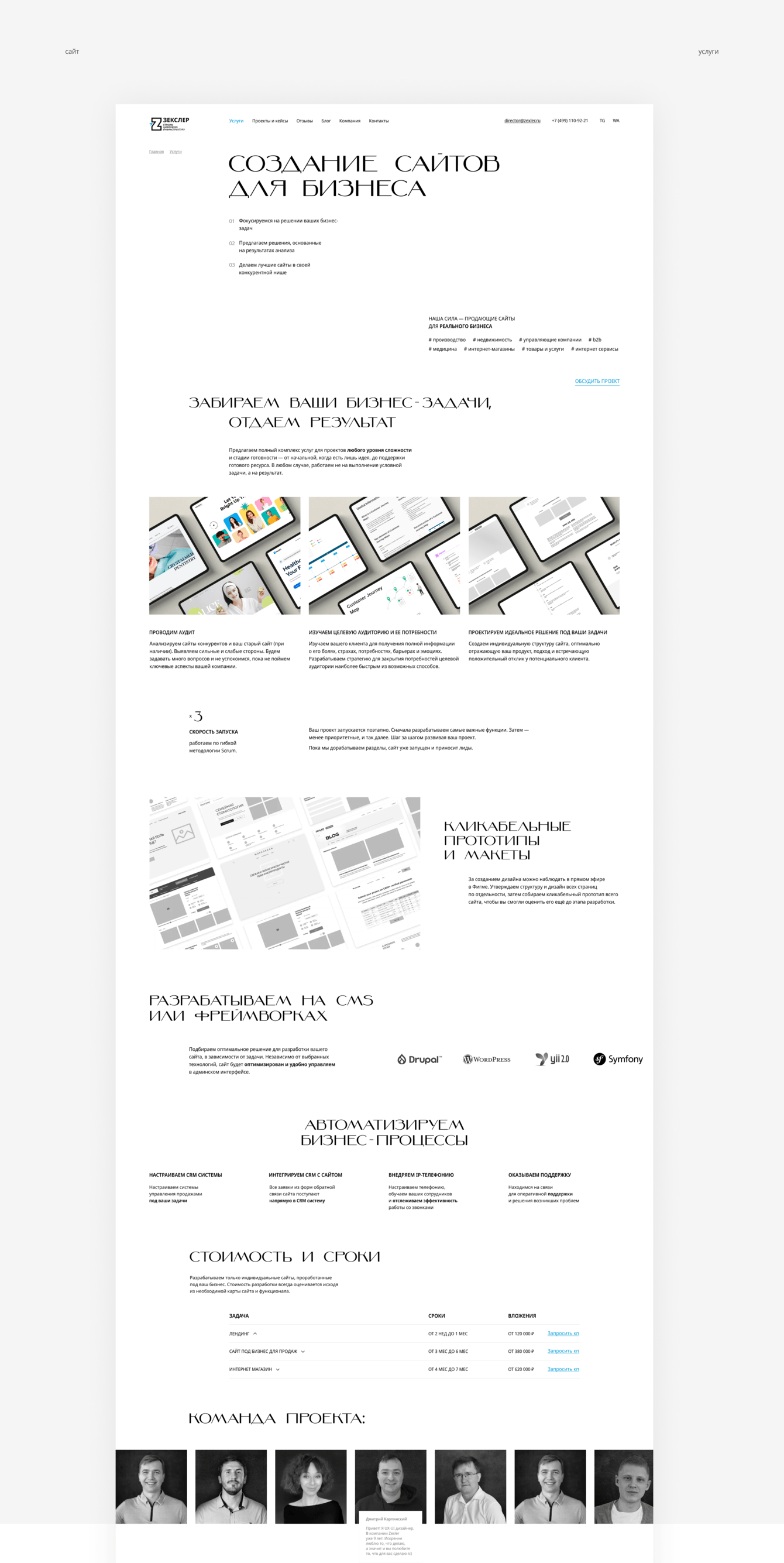 Как любит говорить наш босс: «больше конкретики». Вот и старались на страницах услуг писать больше конкретики и меньше воды. Чтобы пользователи на сайте видели то, что мы на самом деле делаем и как мы это делаем. Слова (где можно) подкрепляли примерами. Максимально старались показать свой подход.