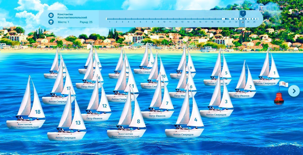 Оказалось не так-то просто разместить 30 яхт так, чтобы они вошли на первый экран старта, были адекватного размера, не перекрывали друга друга, а на их бортах были читаемые имя и фамилия участника.