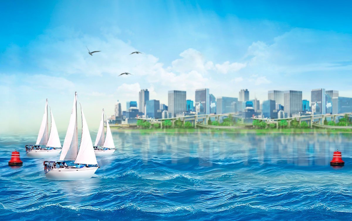 Для заднего плана Регаты было выбрано солнечное побережье южного города (который как бы намекает: «Приплывешь первым, получишь премию и будешь сидеть вон под той пальмой».).