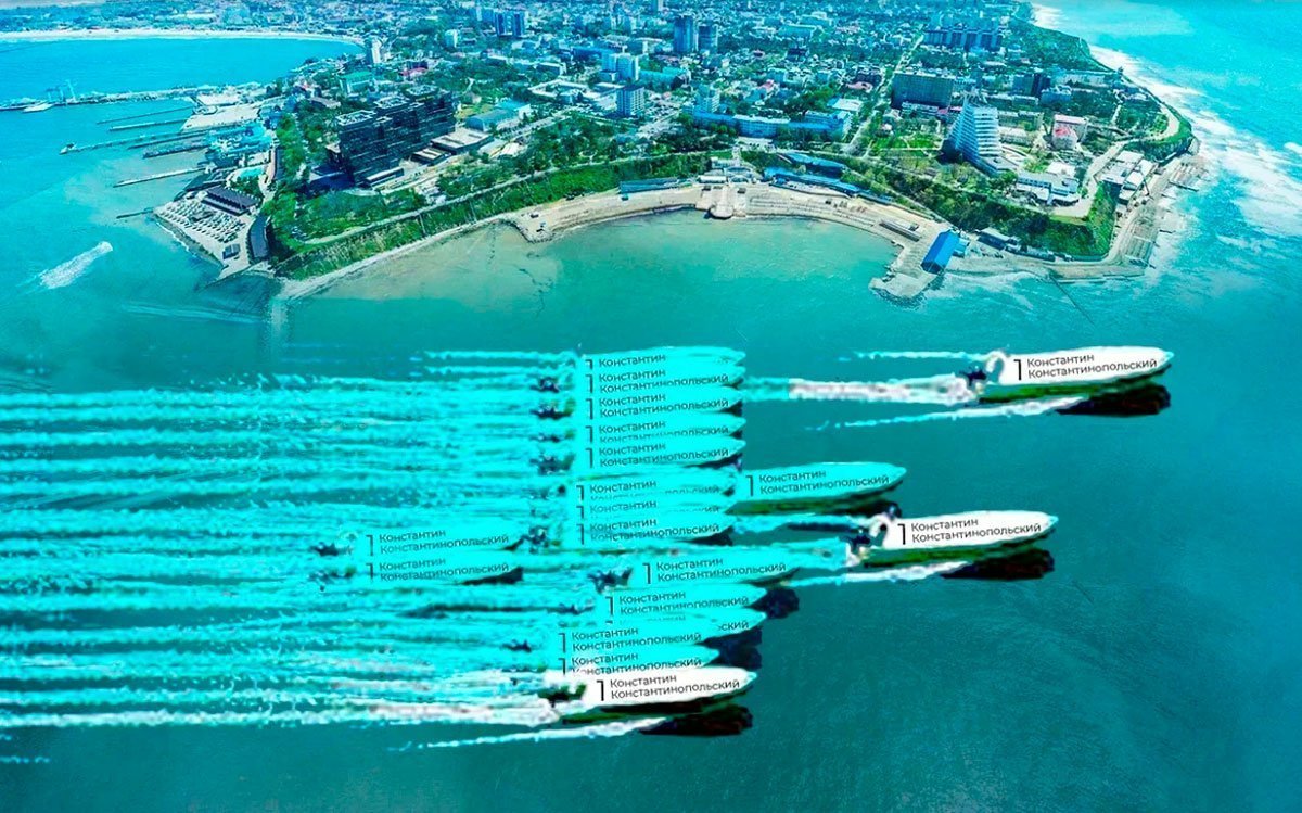 Мы разместили яхты в шахматном порядке, что позволило, во-первых, изобразить их максимально реалистичными, во-вторых, разместить ФИО в читаемом виде и, в-третьих, расположить 30 яхт без особого труда на линии старта.