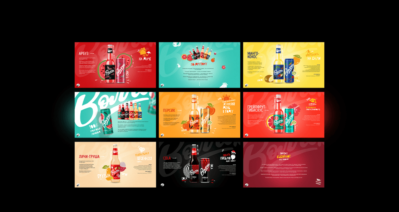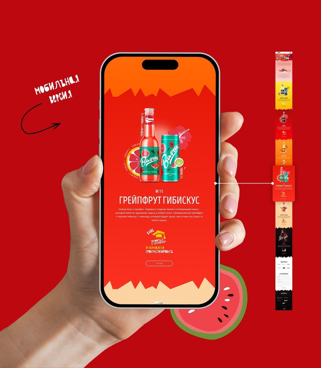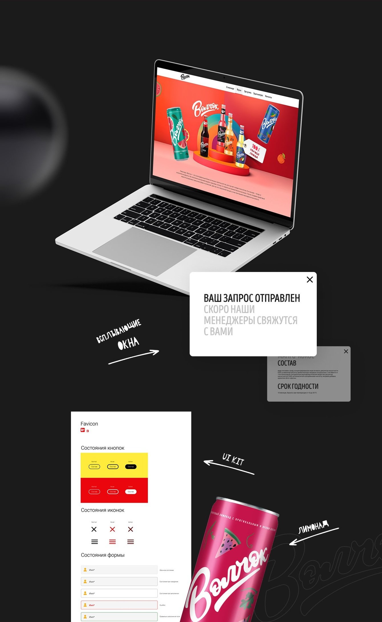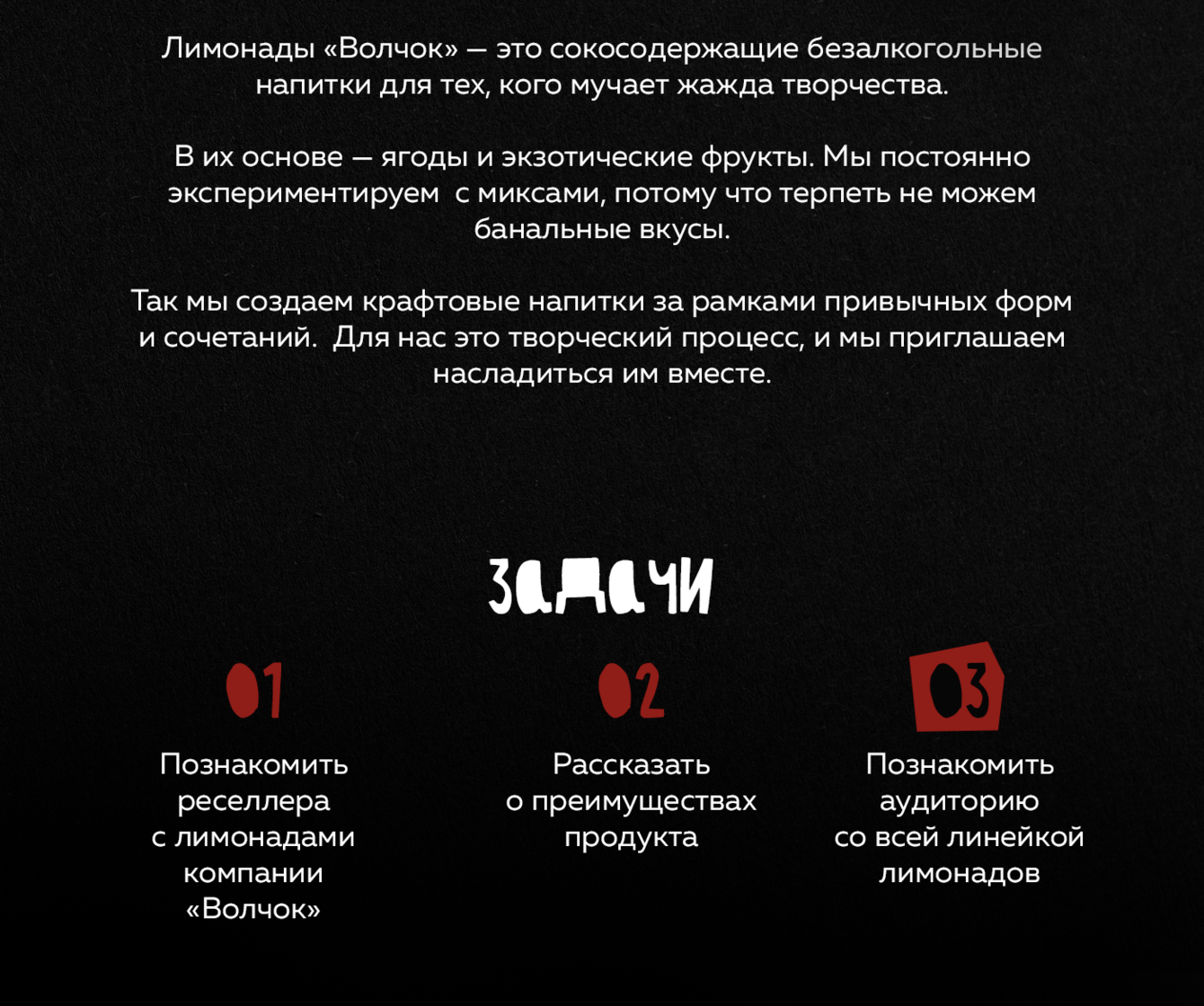 В ходе работы мы оперативно обменивались обратной связью, которая была экологичной и понятной. Это позволило нам закрыть обе задачи в минимальные сроки. В процессе разработки лендинга и презентации о продукте мы нашли отличный баланс между креативностью и информативностью. Клиент был открыт к нашим идеям и предложениям, что позволило нам создать привлекательный дизайн, который отражает уникальность и качество лимонадов "Волчок".