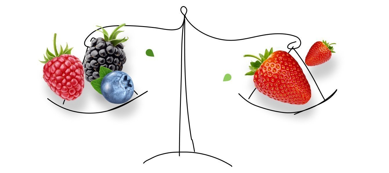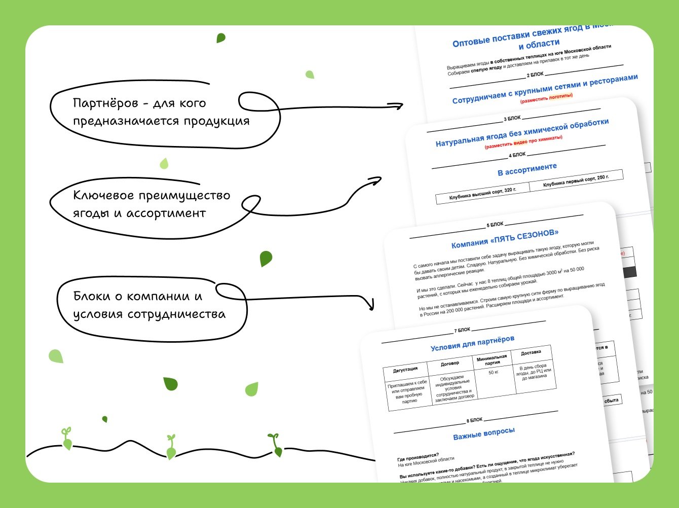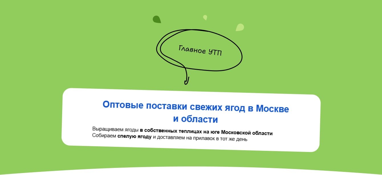 То есть в тексте мы использовали именно слово «ягода» и подразумевали весь ассортимент. Клубнику просто польём получше на следующем этапе, чтобы она затмила пока остальные ягоды.