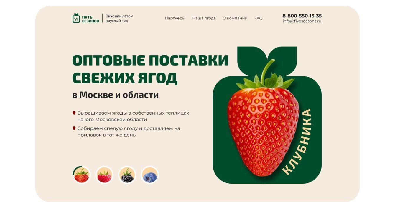 Через 35 дней компания «Пять сезонов» получила готовый сайт, который за счет информации о деятельности компании и ее продукции, поданной в понятной форме, поднимет узнаваемость бренда и привлечет новых партнеров.
