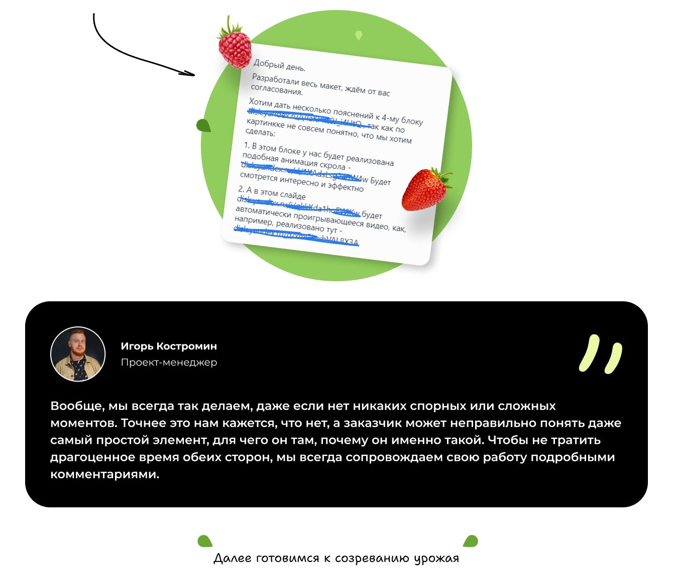 Пришёл интересный заказчик с вкусной темой, поэтому мы решили показать нашу работу с ним, да и вообще наш типичный процесс работы по созданию сайта на примере агро процесса по выращиванию чего-нибудь.