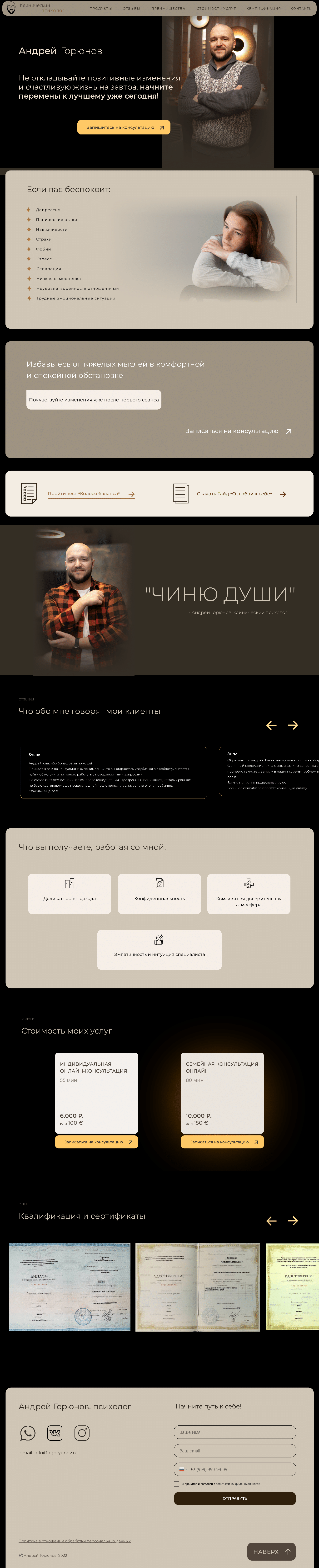 Заказчиком поставлена задача разработать и запустить лендинг эксперта для сбора лидов и позиционирования эксперта-психолога.