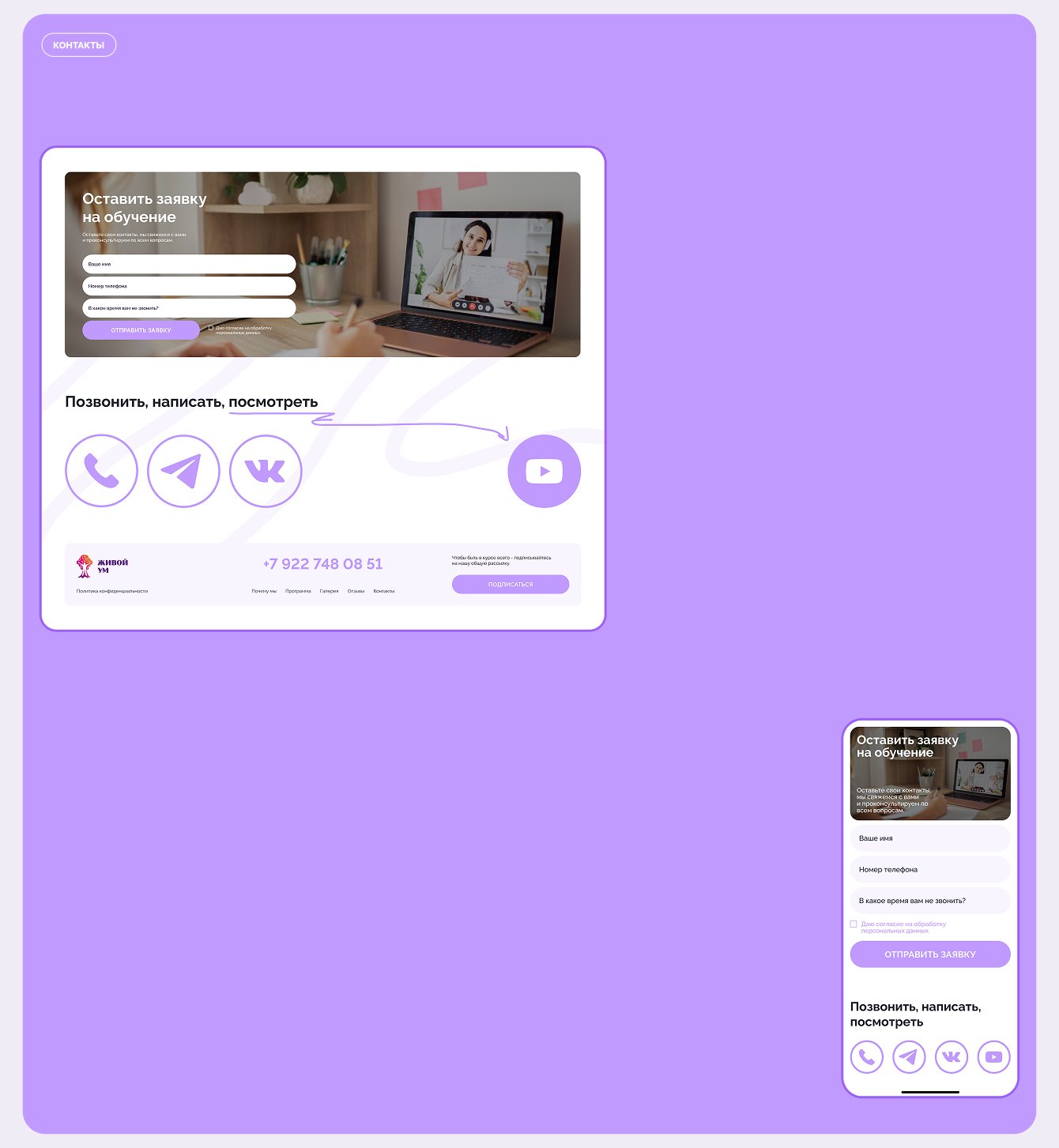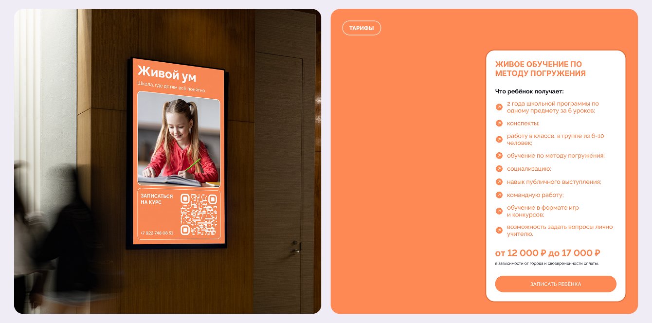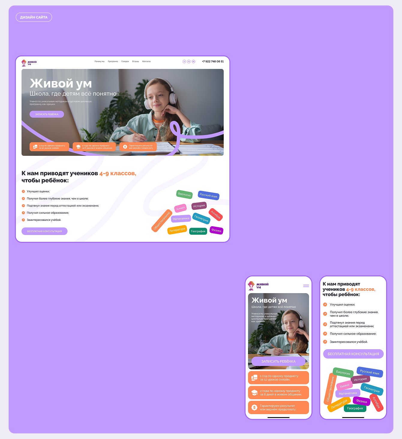 Создать высоко конверсионный лендинг, отражающий уникальную методологию «Живого ума» и эффективно привлекающий целевую аудиторию — учащихся и их родителей.