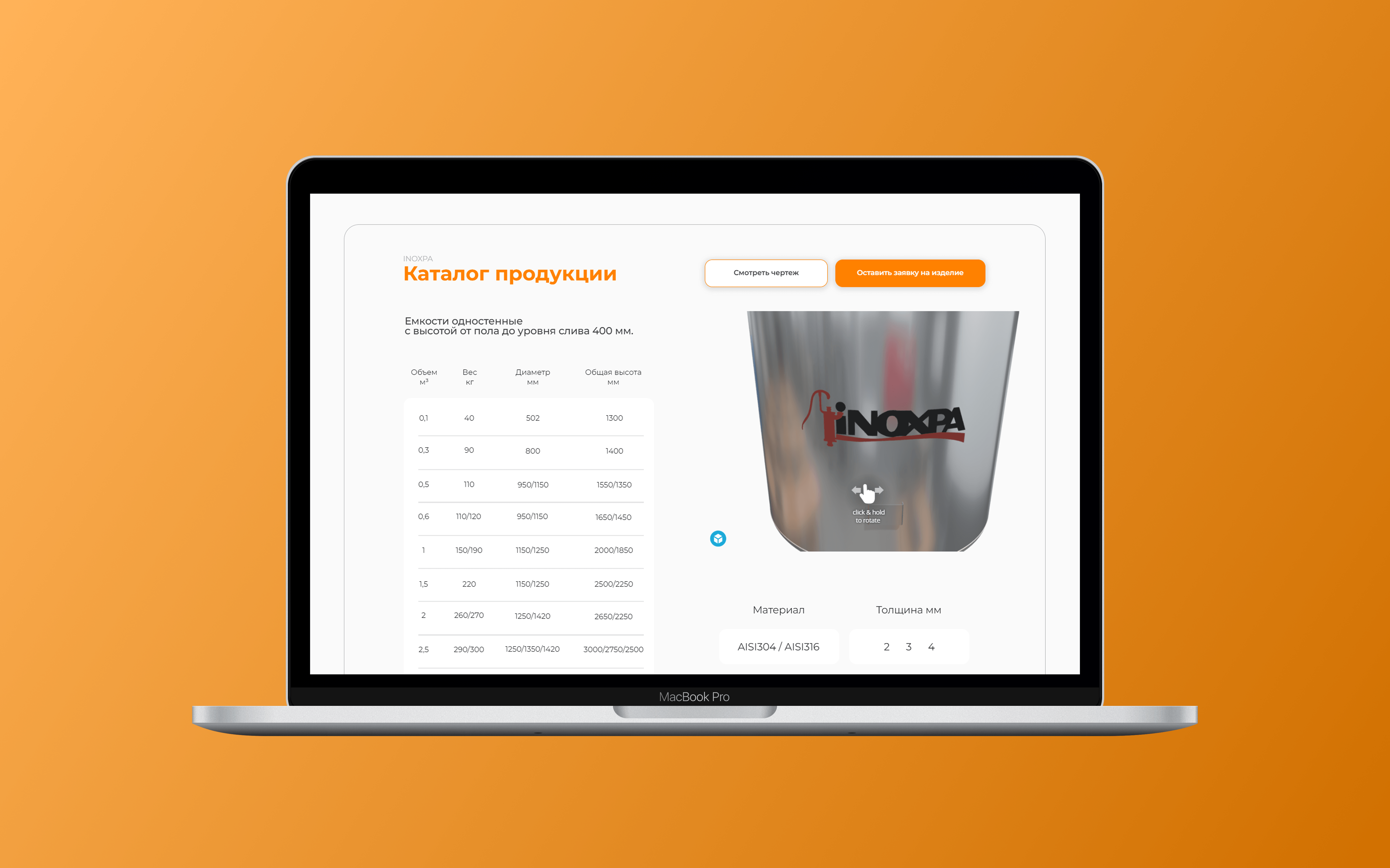 2. Каталог продукции с характеристиками и 3D-моделью, чтобы клиенту было проще выбрать подходящий вариант, в этот раздел мы включили: