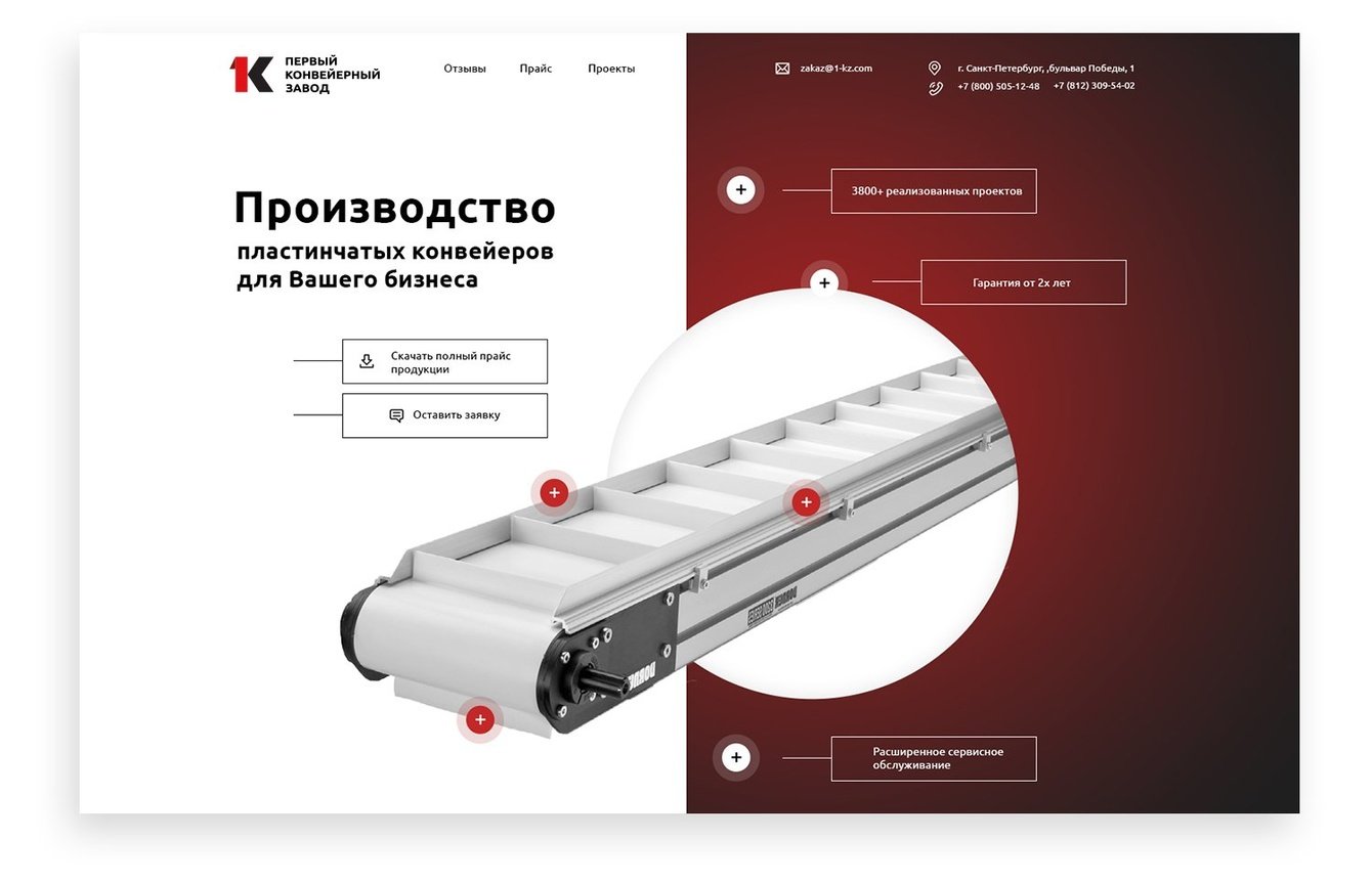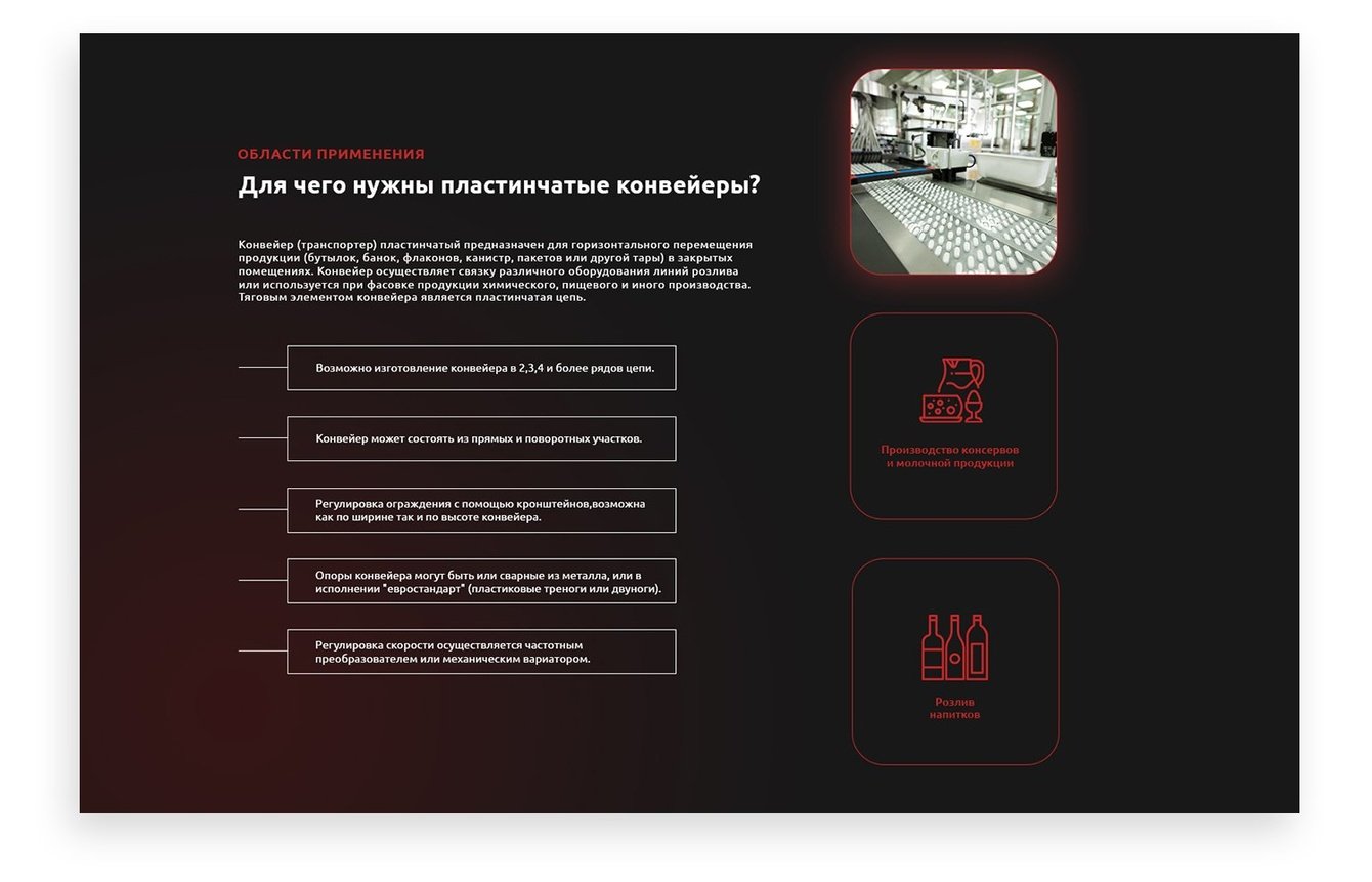 Сайт выполнен в стиле "минимализм" с добавлением 3D-моделей конвейеров. Плавная анимация и "геймификация" отдельных элементов создает вовлечение в просмотр сайта.