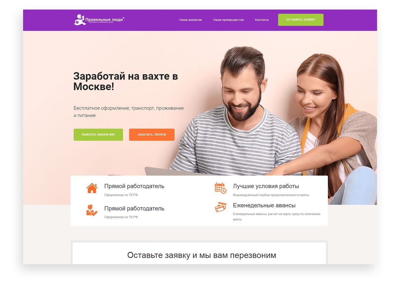 В рамках данного проекта была реализована структура воронки захвата посетителя, юзабилити продумано таким образом, чтобы достичь результат при работе с ЦА. Для удобства посетителей были размещены формы заказа обратного звонка и интерактивная карта. Страница выполнена в соответствии с желанием заказчика — увеличить продающие свойства сайта по максимуму.