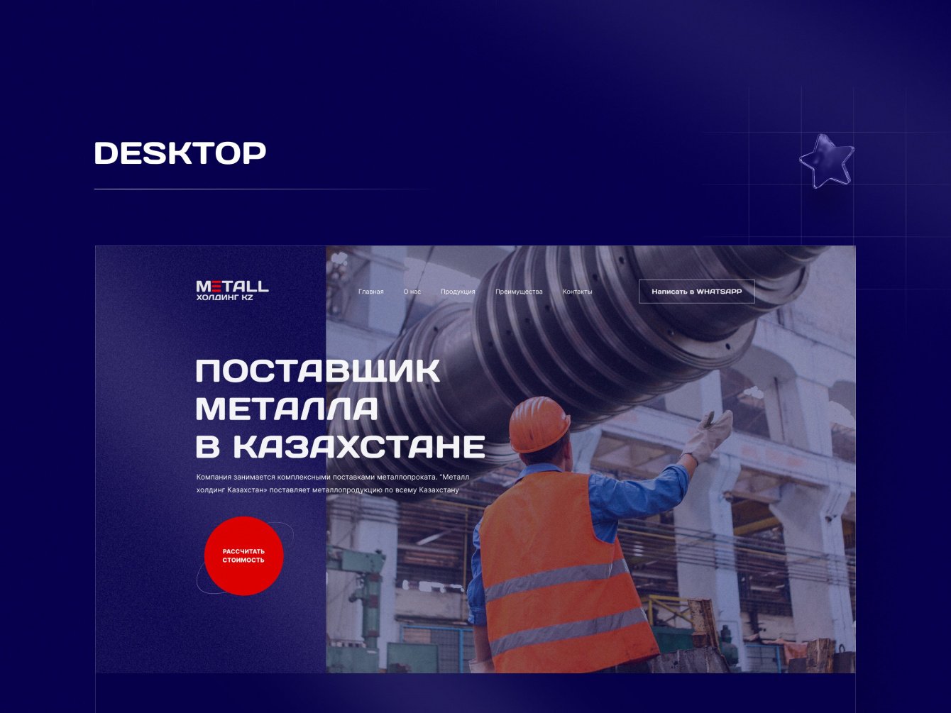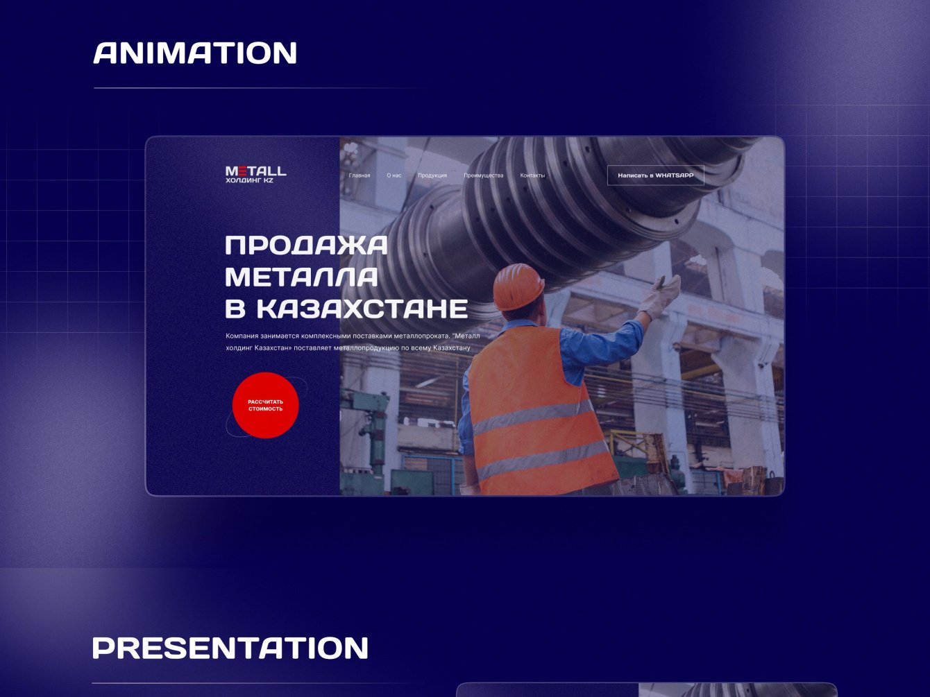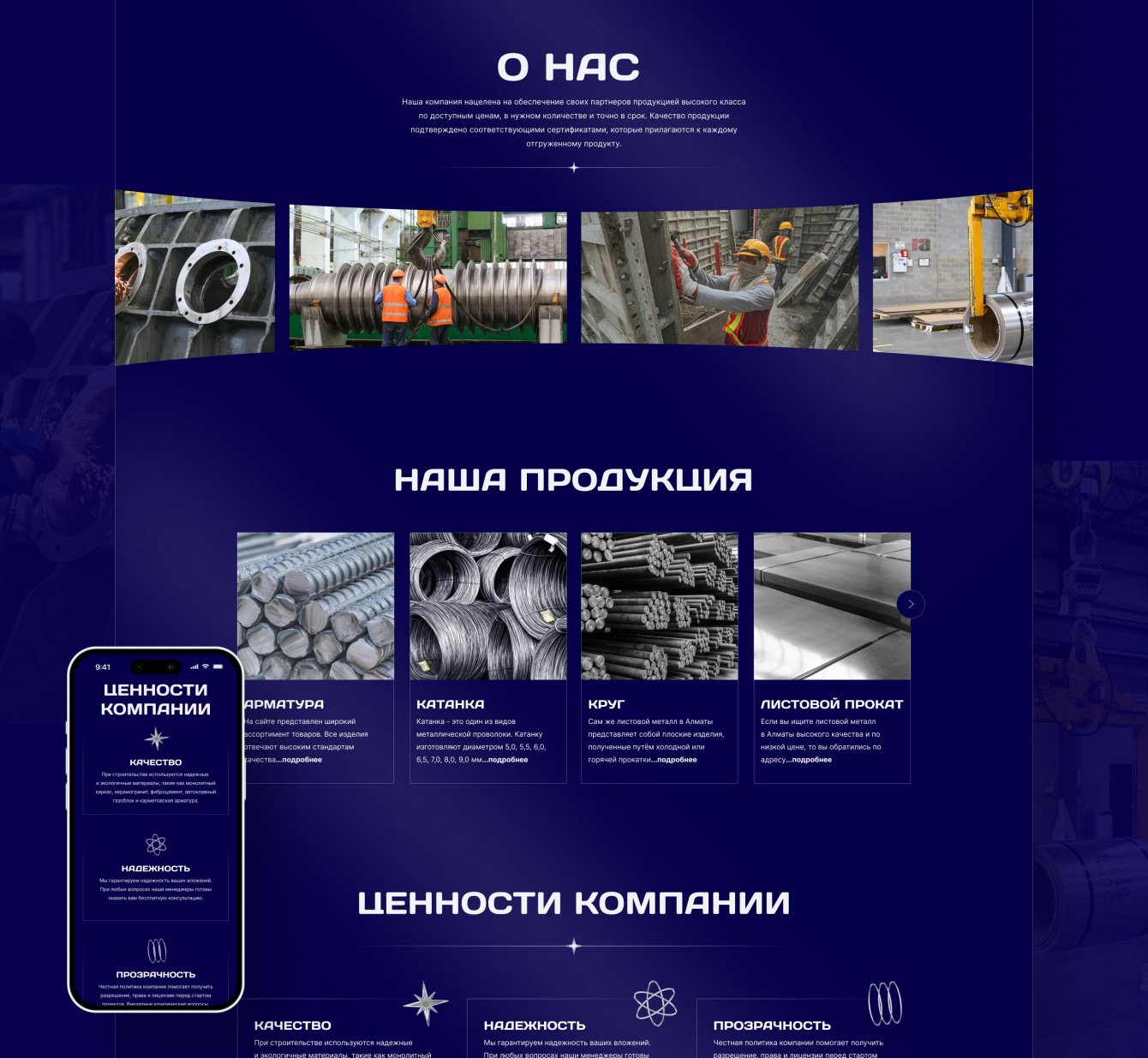Компания занимается комплексными поставками металла. Задача состояла в том, чтобы разработать логотип и дизайн сайта. Это корпоративный сайт, поэтому оно в основном должна была включать в себя информацию о компаний и о продукциях.
