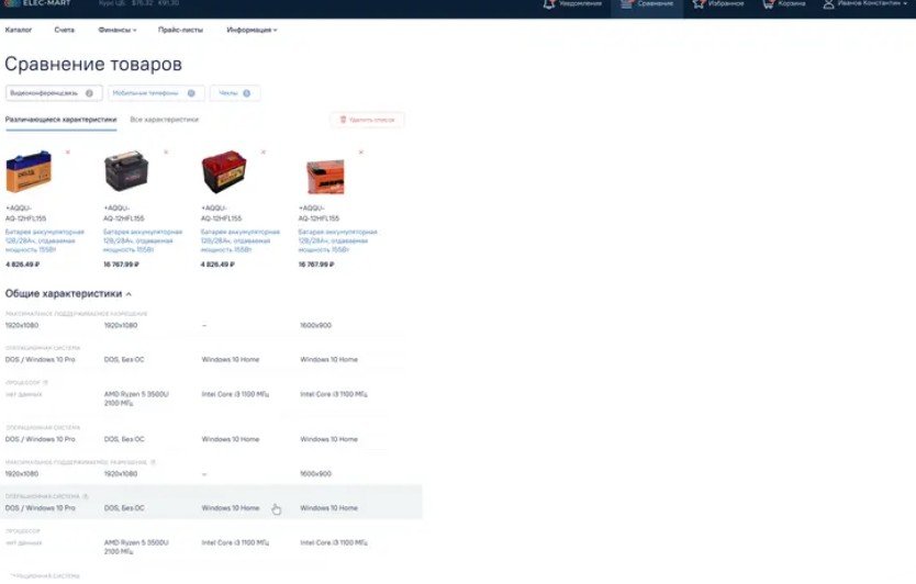 - Страница «Сравнение товаров»;
