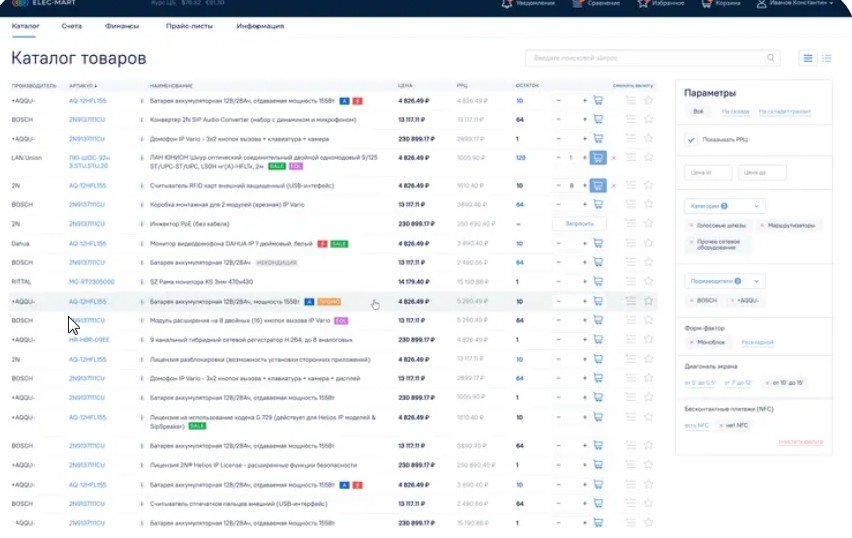 - Автоматическая загрузка информации об остатках, ценах, скидках и прочее;