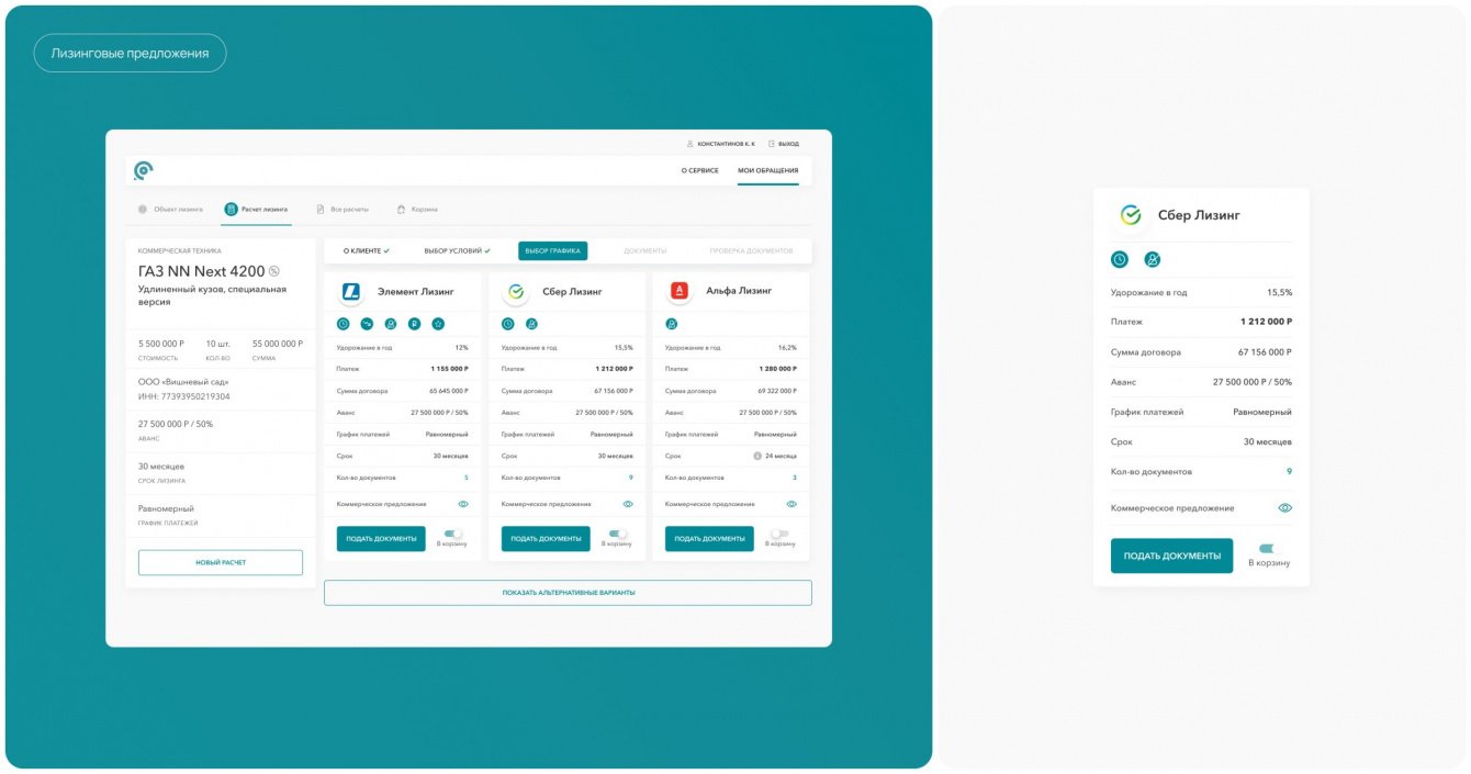 Нам поставили задачу разработать MVP личного кабинета для пользователей, которые хотят выбрать наиболее выгодные условия по лизингу, сравнить предложения, в режиме онлайн собрать все документы и отправить их на рассмотрение в ту или иную лизинговую компанию.