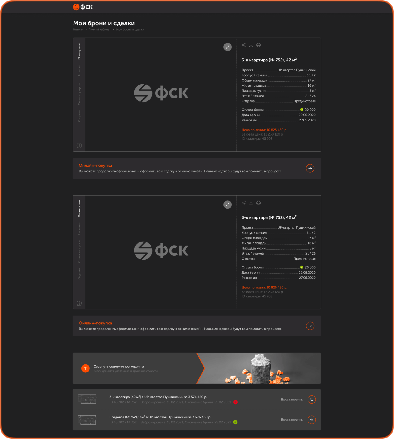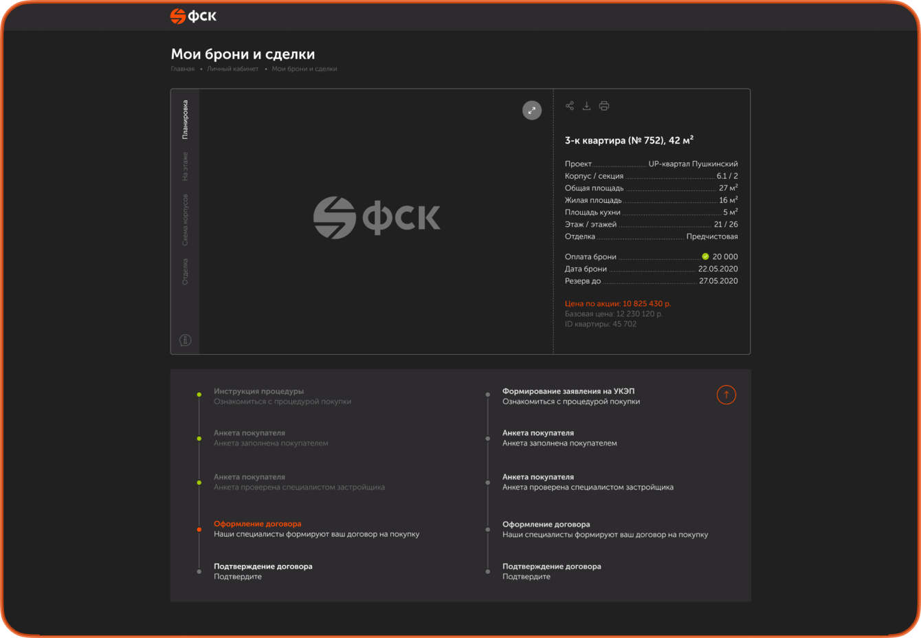 Спроектировать и разработать удобную среду для покупателей квартиры. Личный кабинет должен позволять клиенту ввести все свои личный данные и загрузить документы, которые потребуются для оформления квартиры, видеть свои заявки и брони на квартиру, видеть свою покупку, получить помощь в оформлении документов.