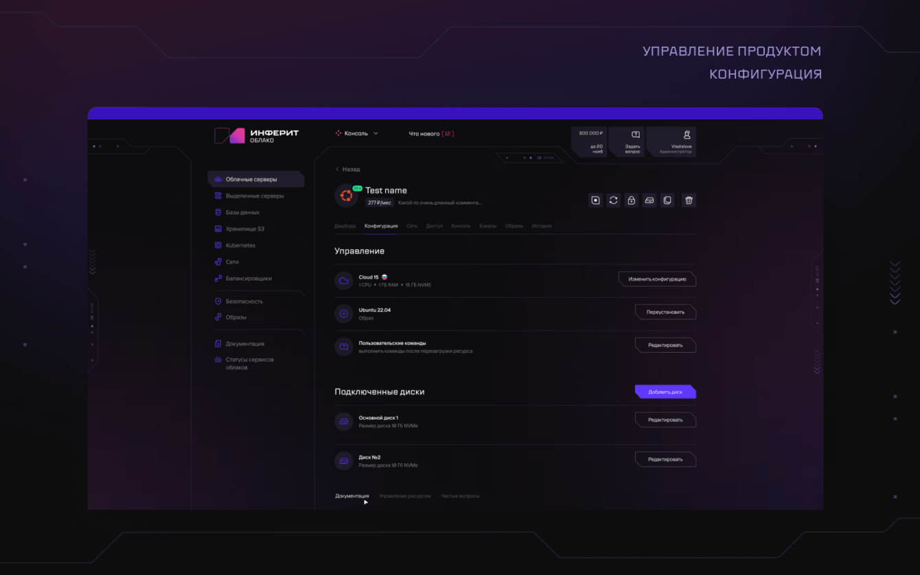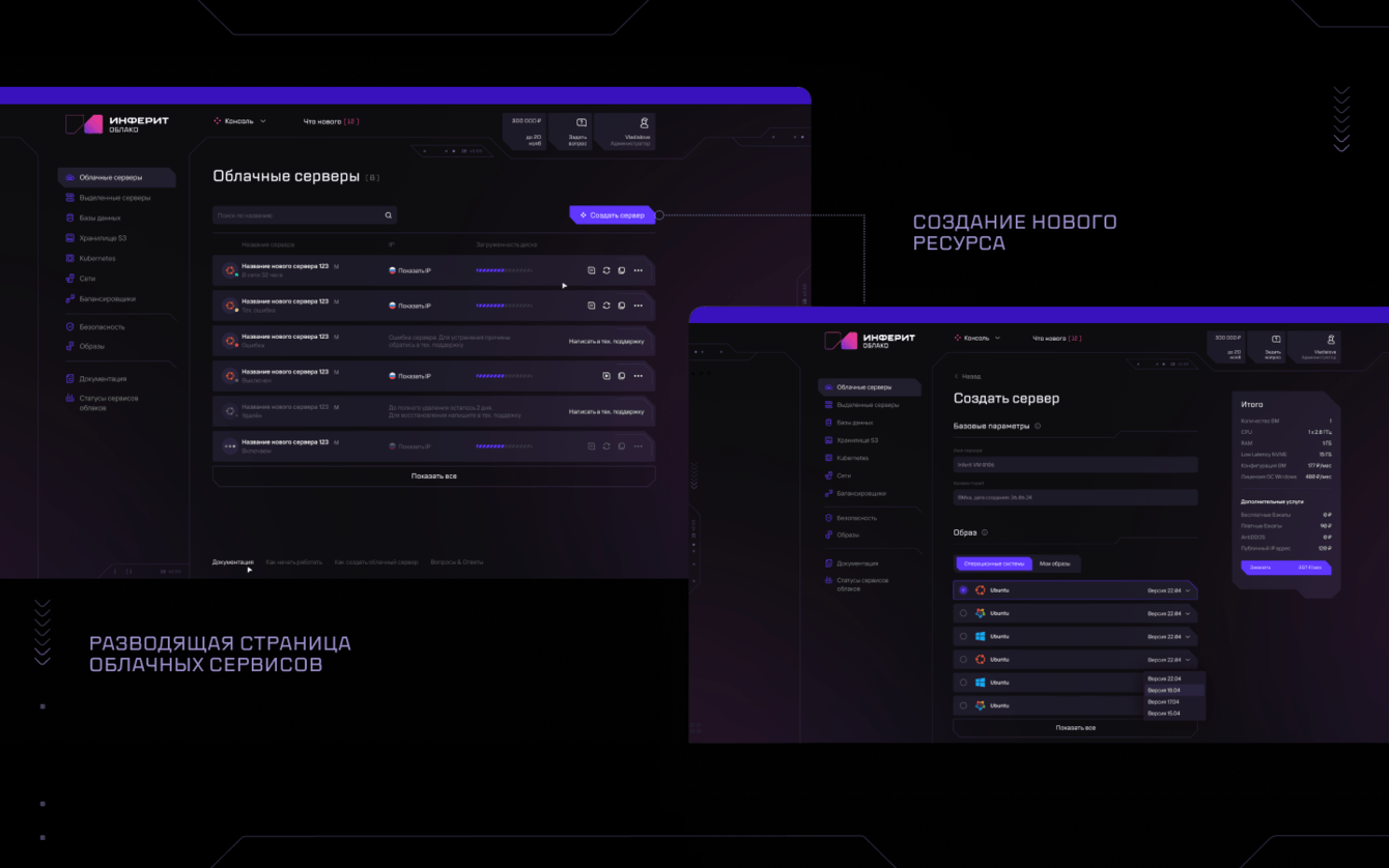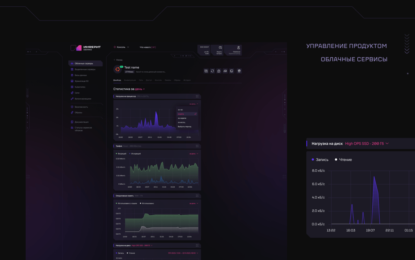 Команда «Инферит» предложила нам помочь с разработкой простого и понятного инструмента, с помощью которого клиенты компании через личный кабинет смогут управлять виртуальными машинами, сетями и другими облачными продуктами, даже не имея специальных знаний и навыков.