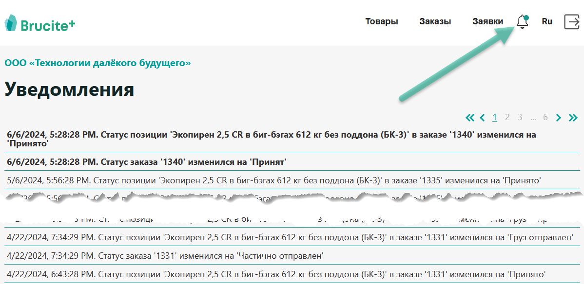 Покупатель получает все уведомления как через "колокольчик" в личном кабинете, так и на электронную почту (об изменениях статусов в заказах, об утверждении заявок и т.д.):