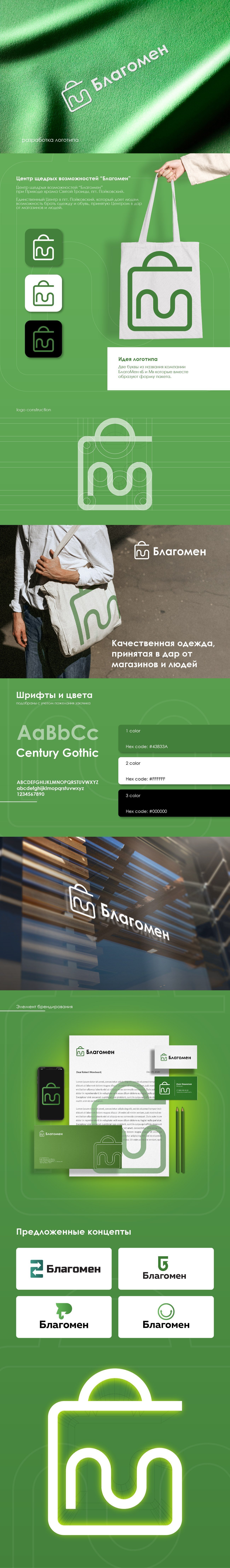 Идея логотипа - объединить две буквы из названия компании Благомен "Б и М", которые вместе образуют форму пакета
